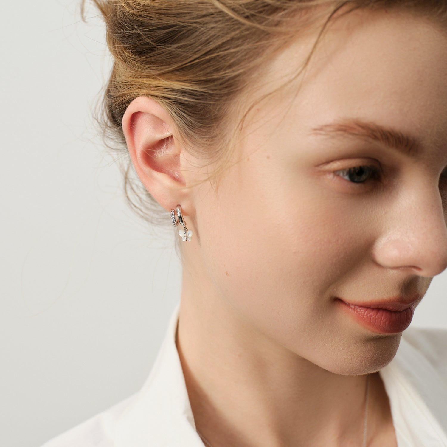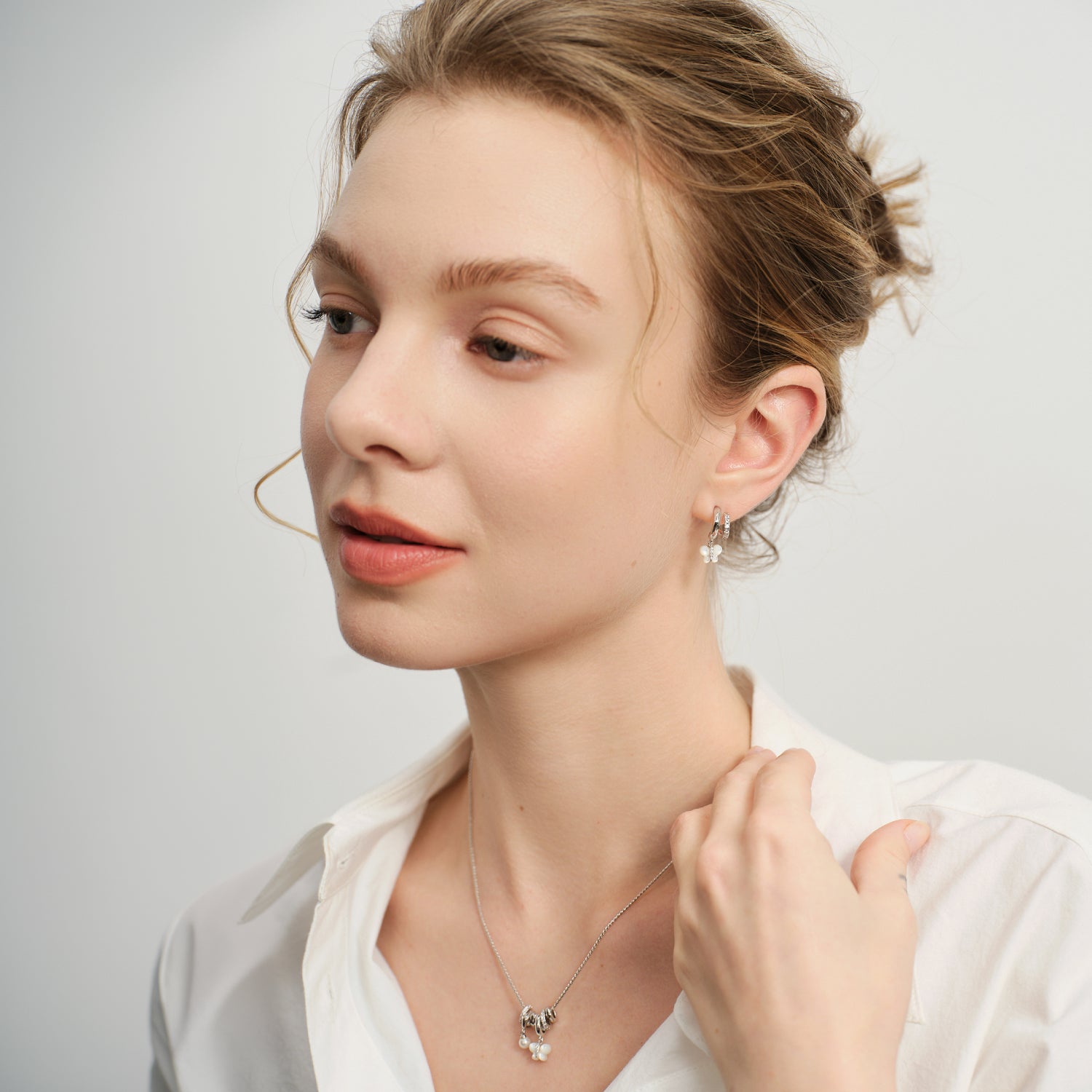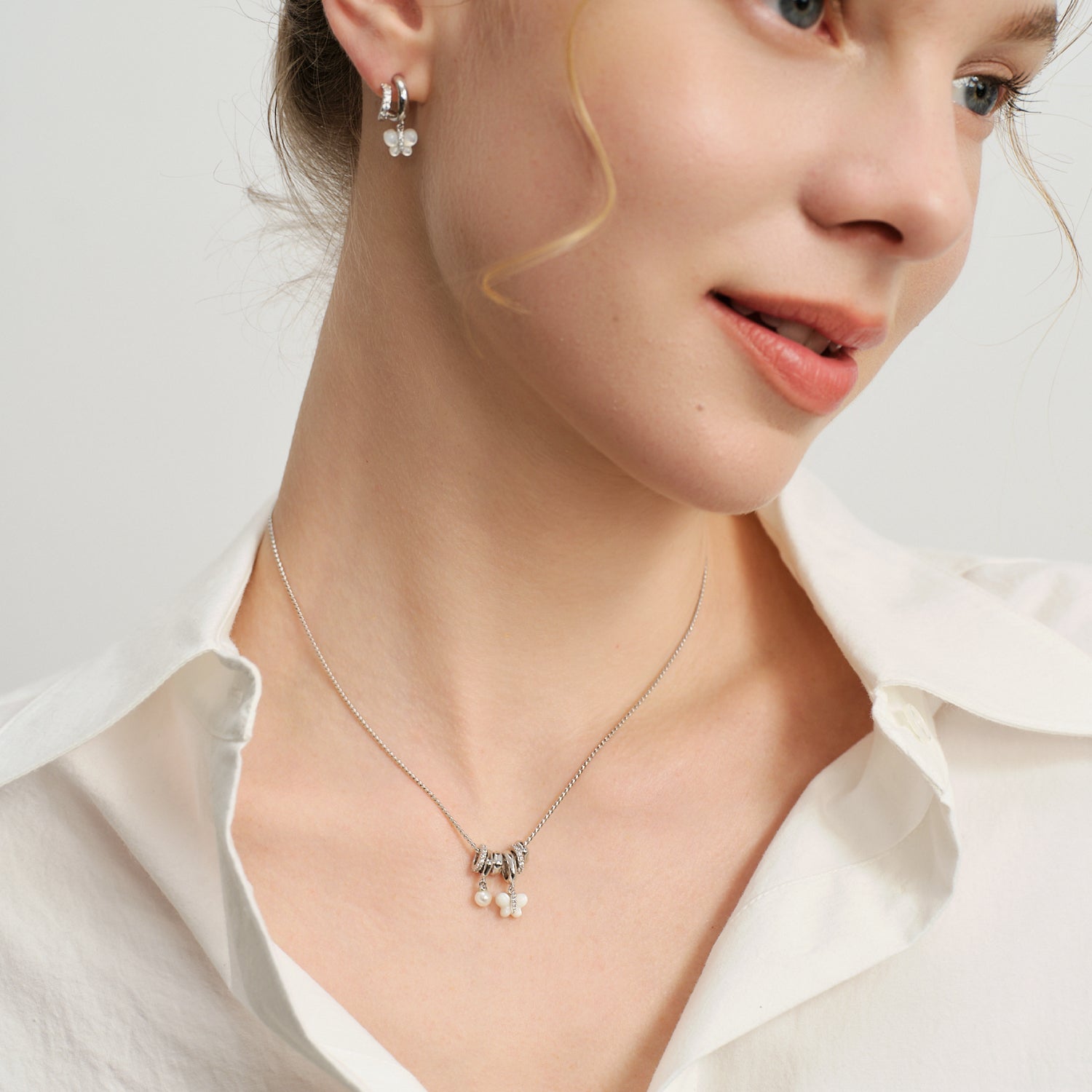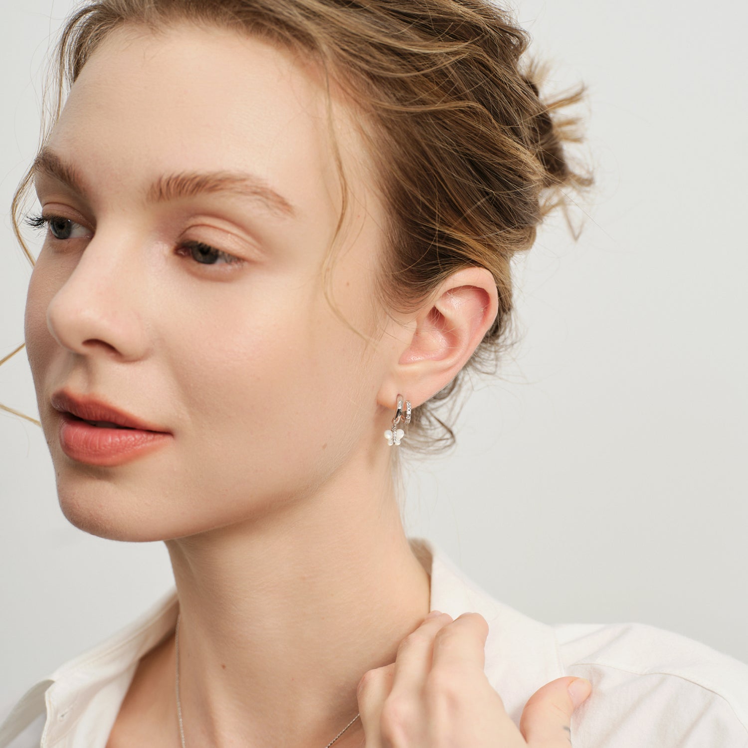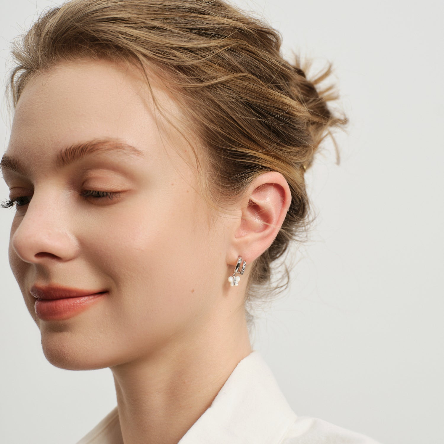 Silver-Tone Duo Hoop Earrings with Pearl Butterfly