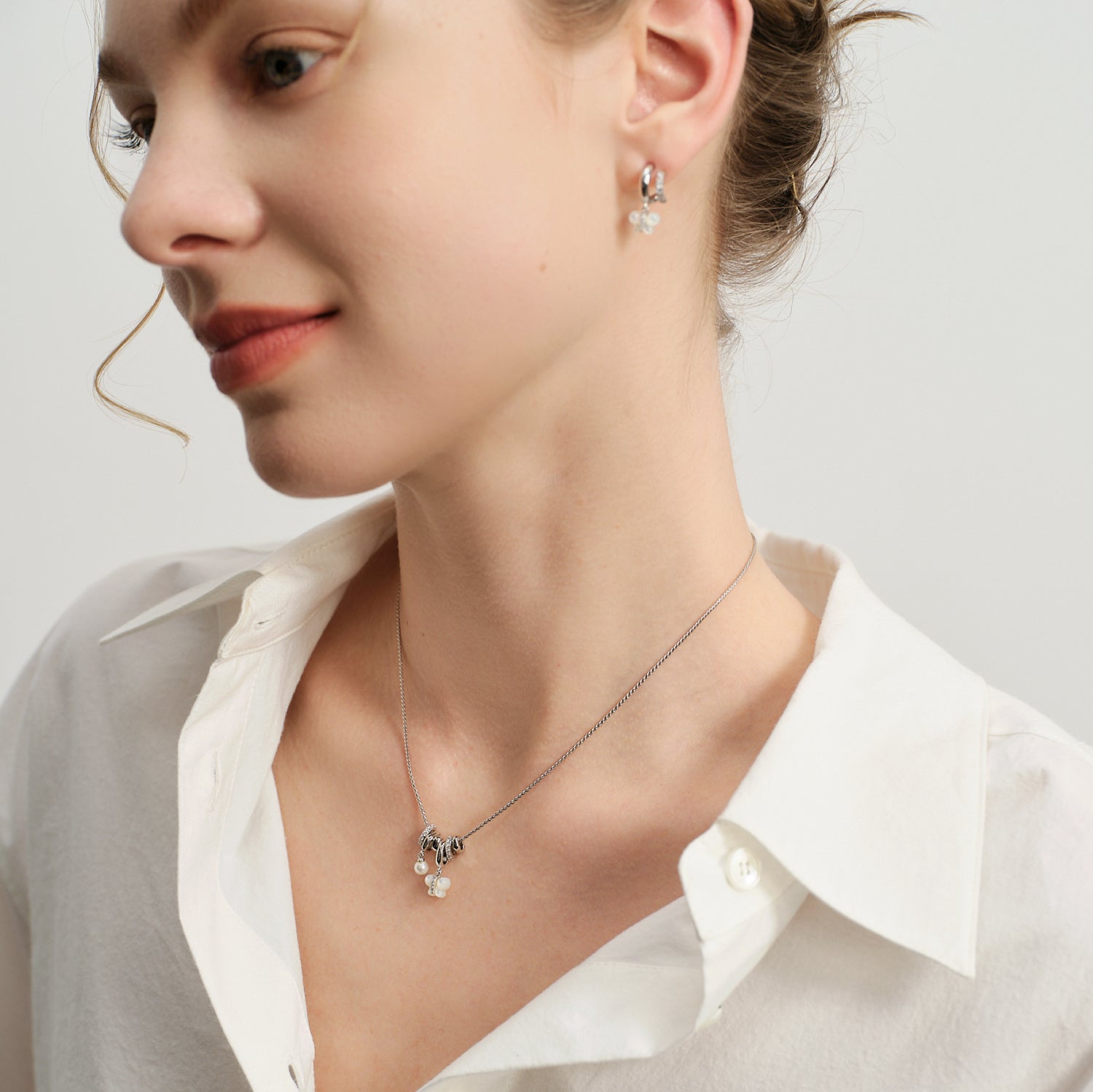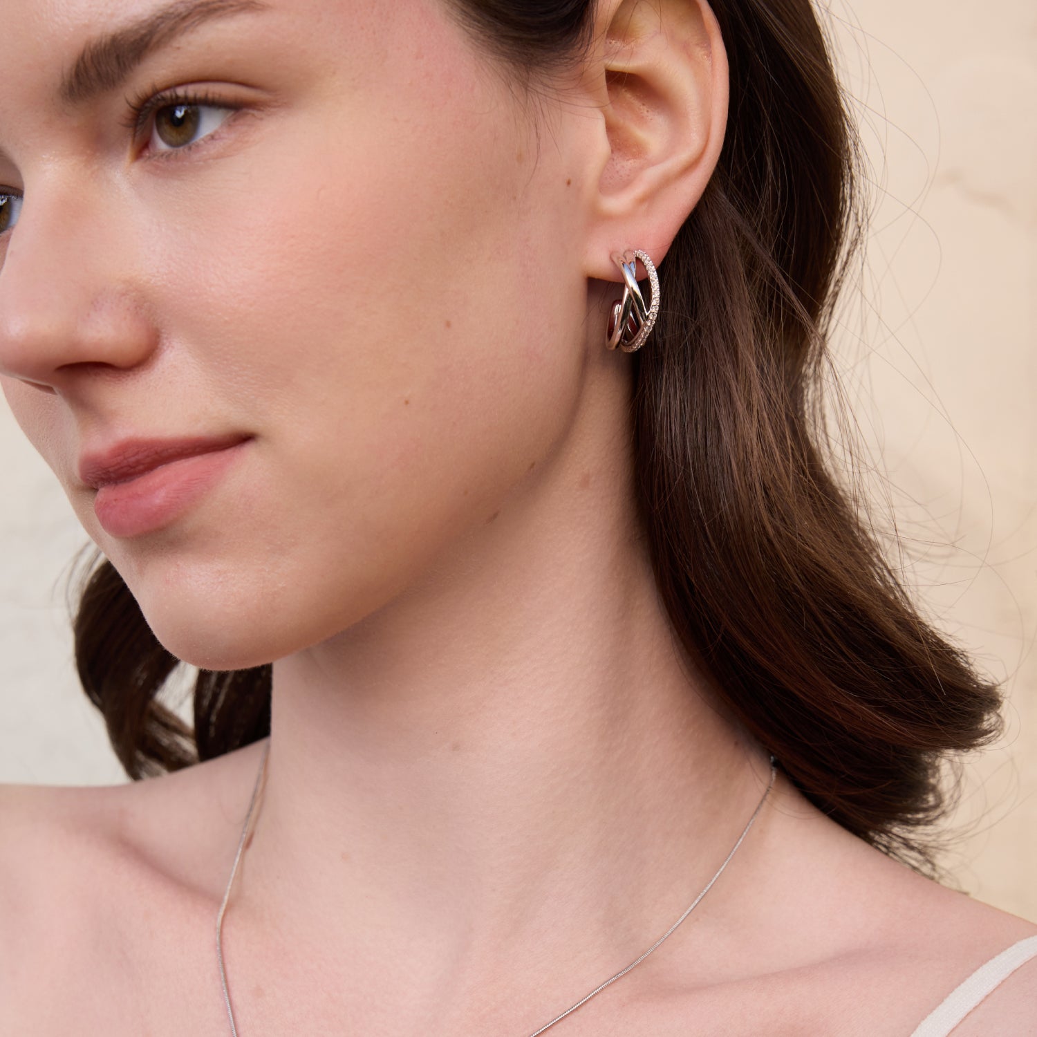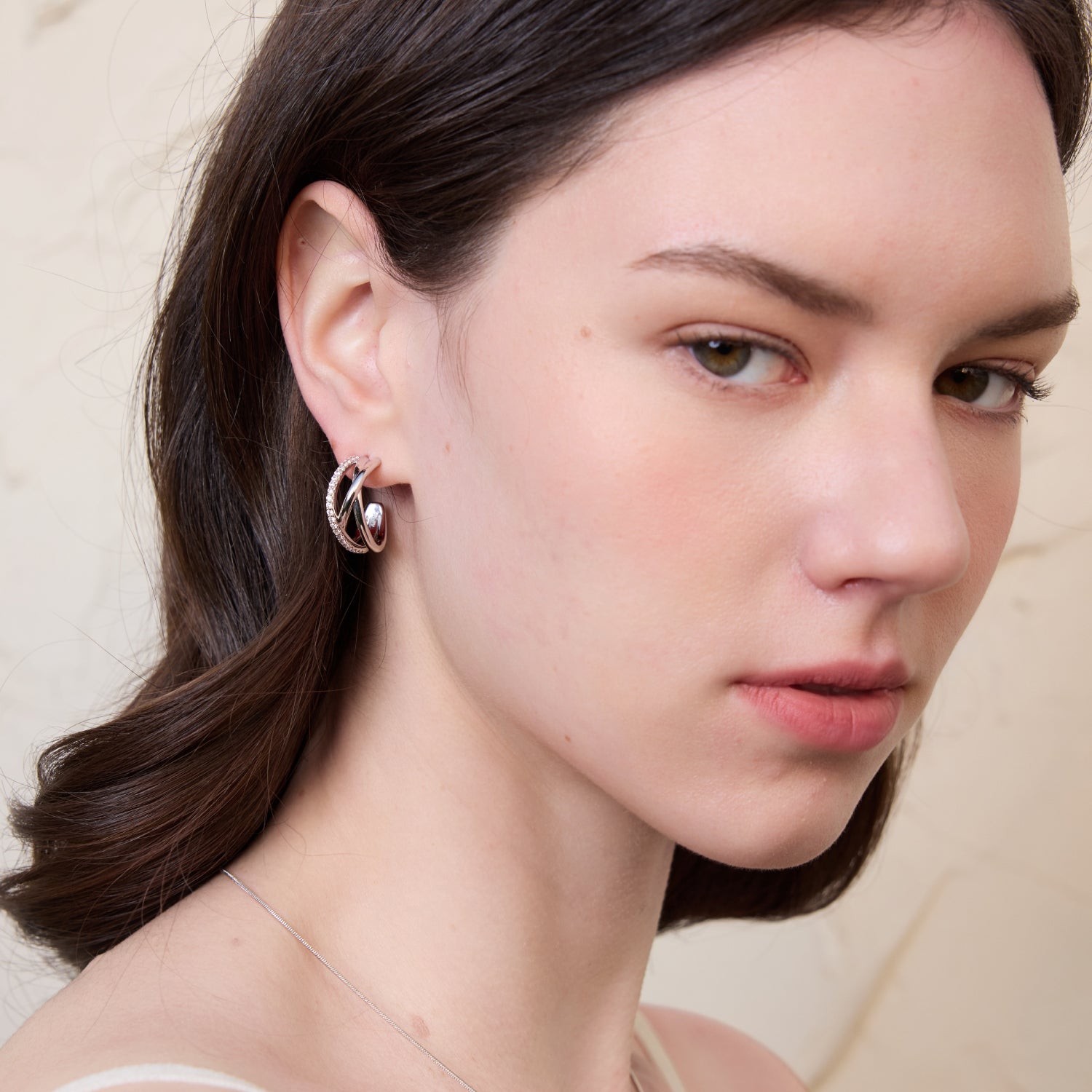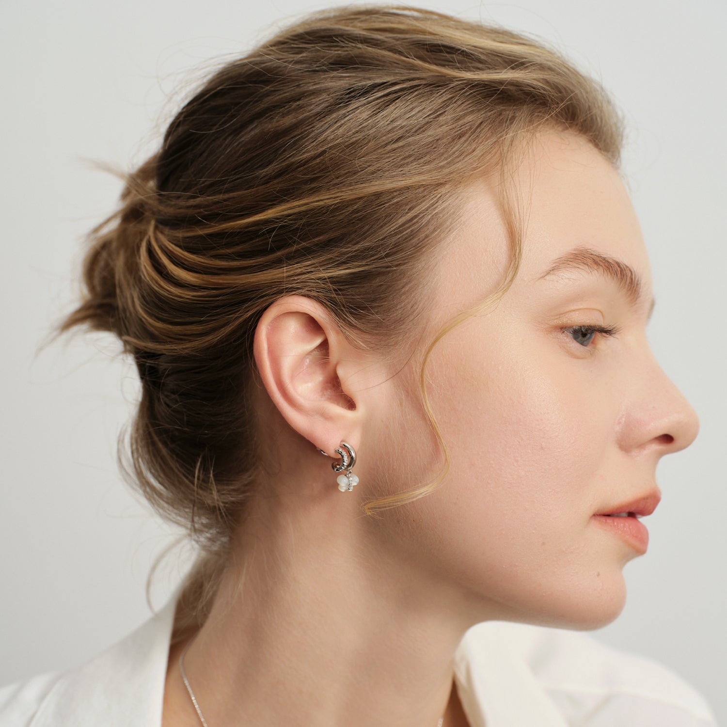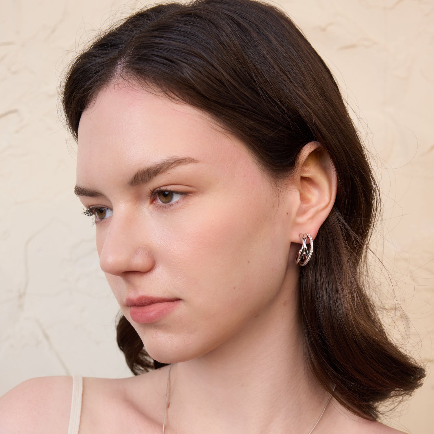 Silver-Tone Duo Hoop Earrings with Pearl Butterfly