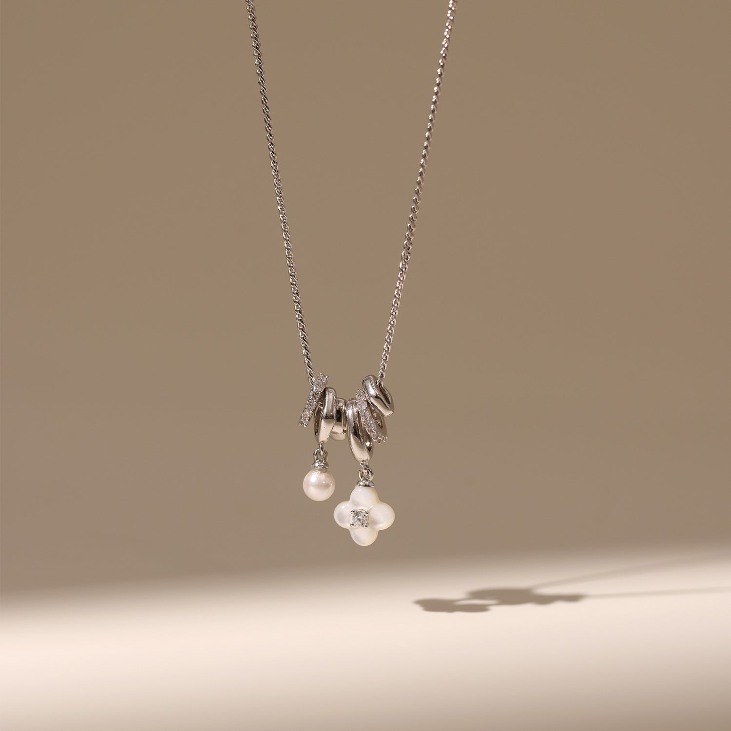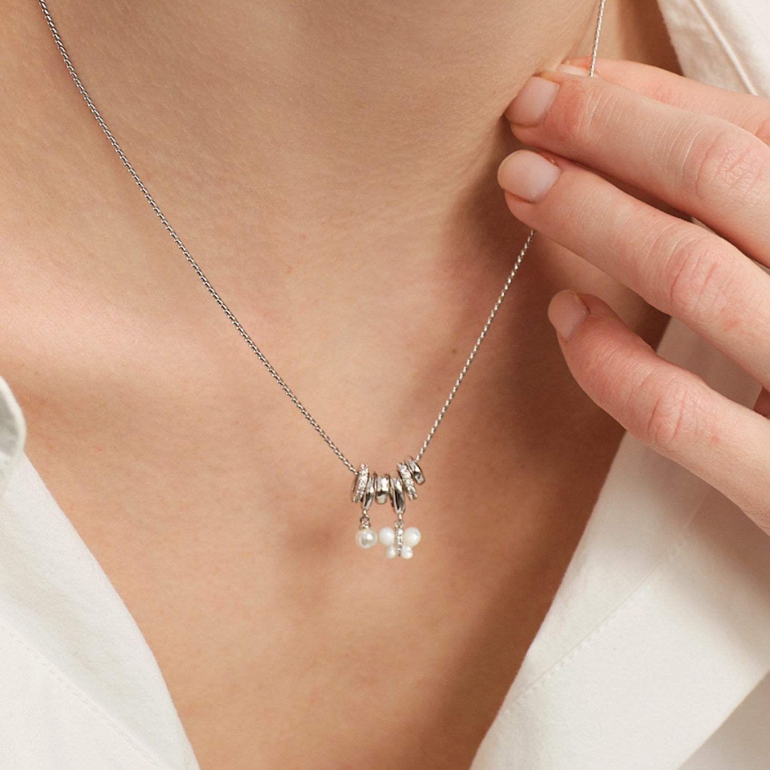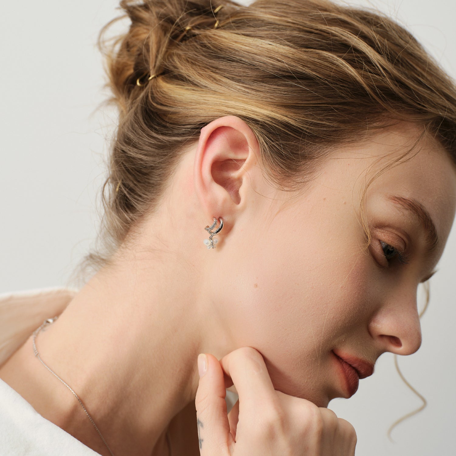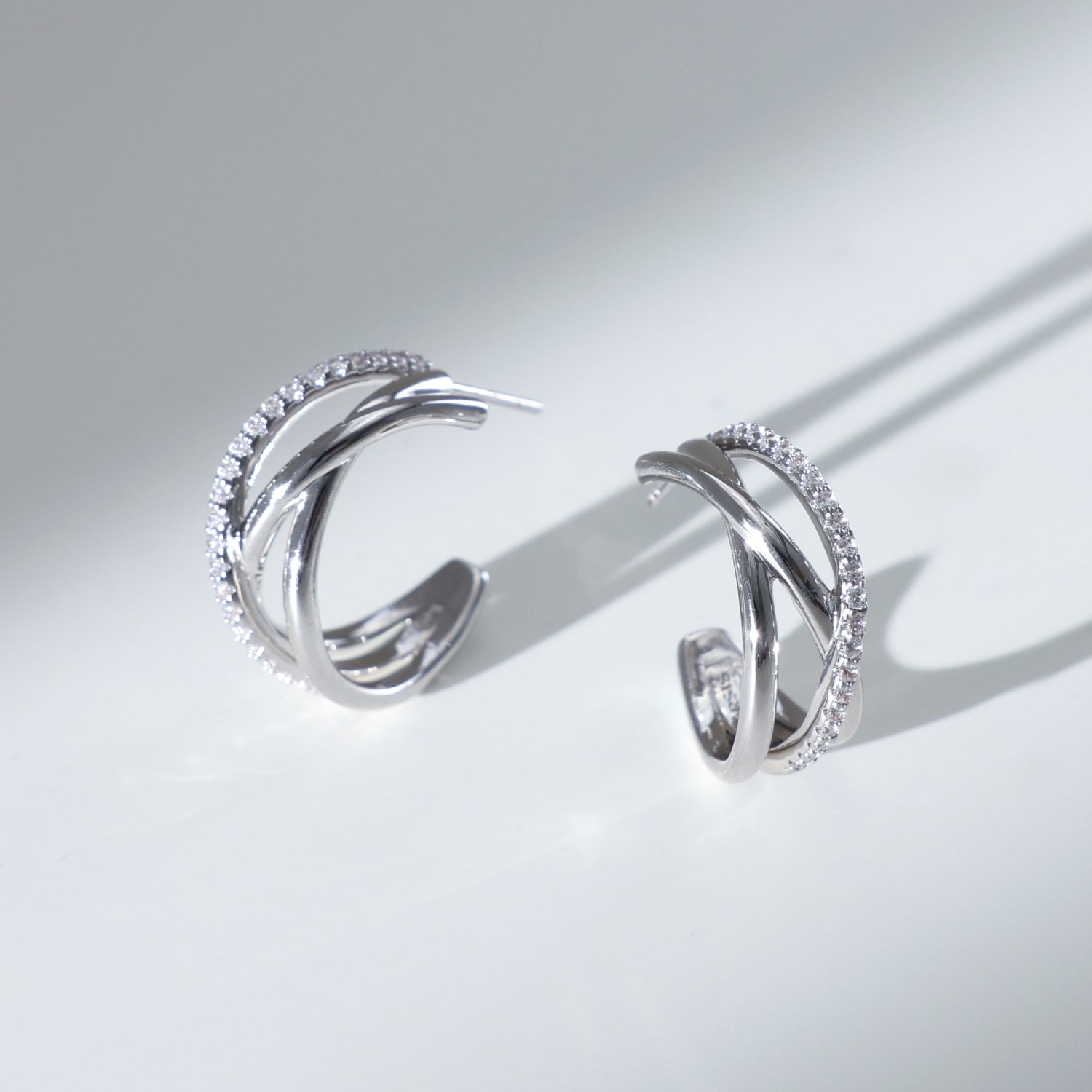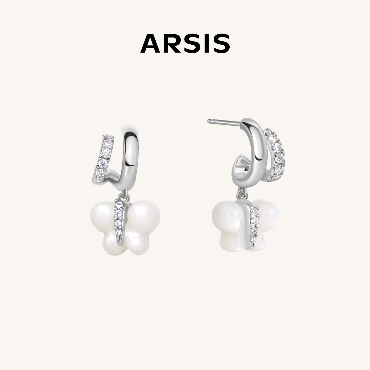 Silver-Tone Duo Hoop Earrings with Pearl Butterfly