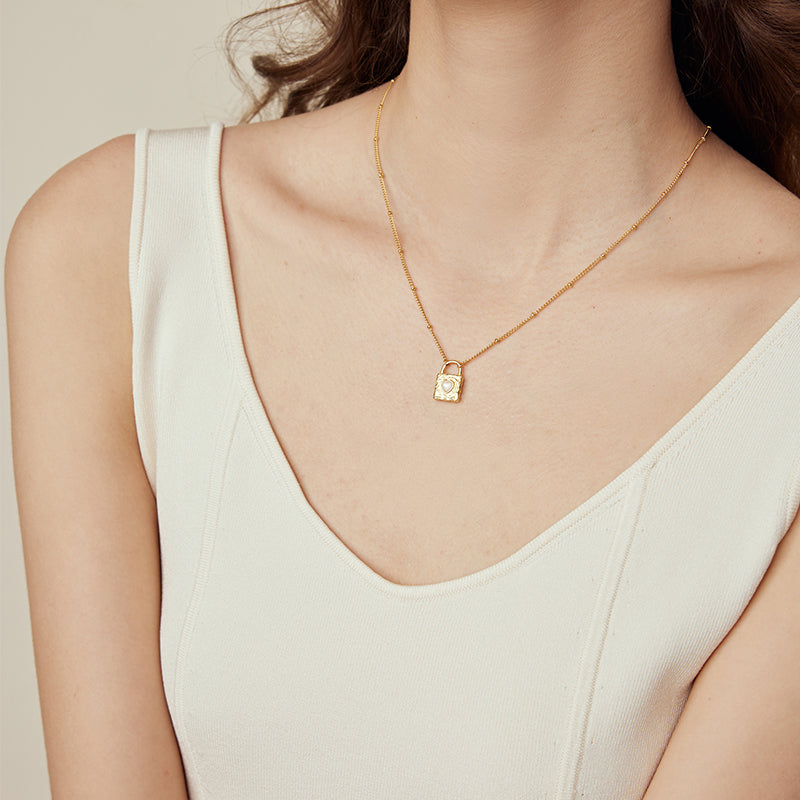 Mother of Pearl Padlock Pendant Necklace