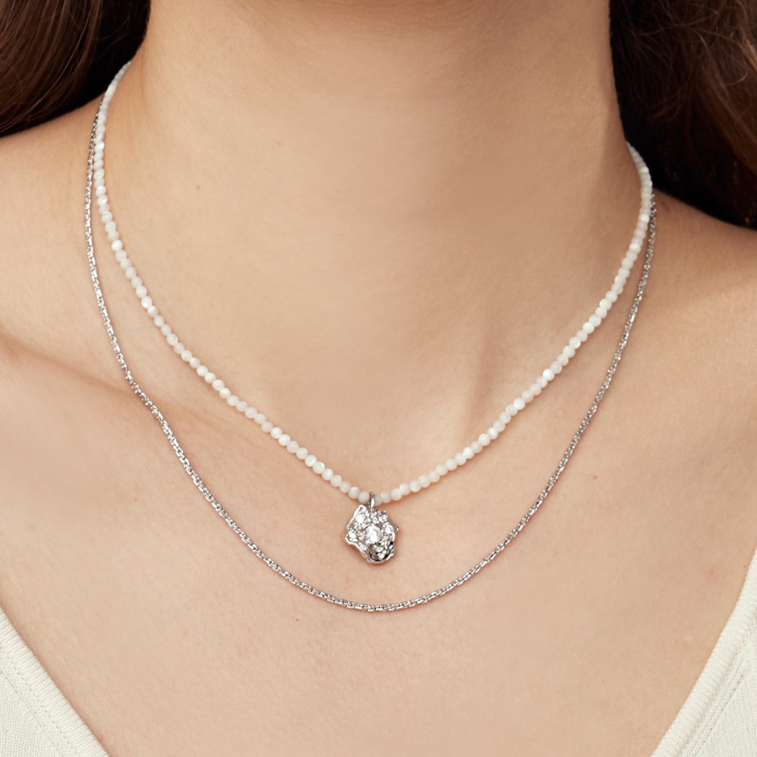 Mother of Pearl Pistil Twin Necklace