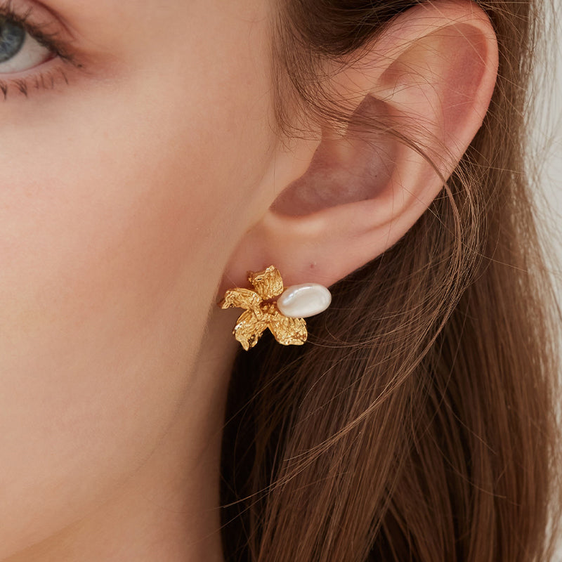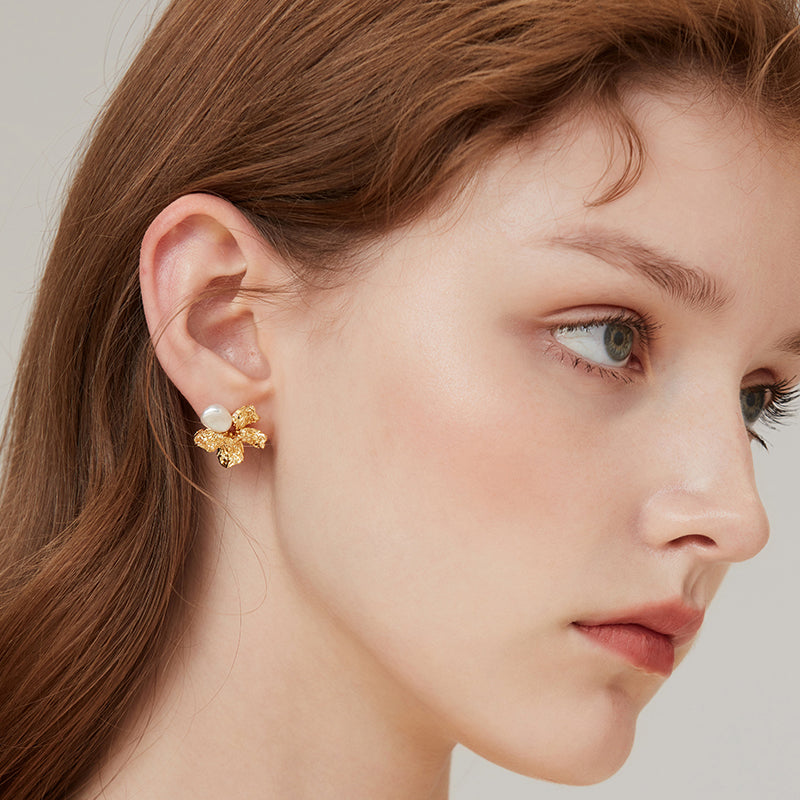 Baroque Pearl Five-Petal Flora Studs