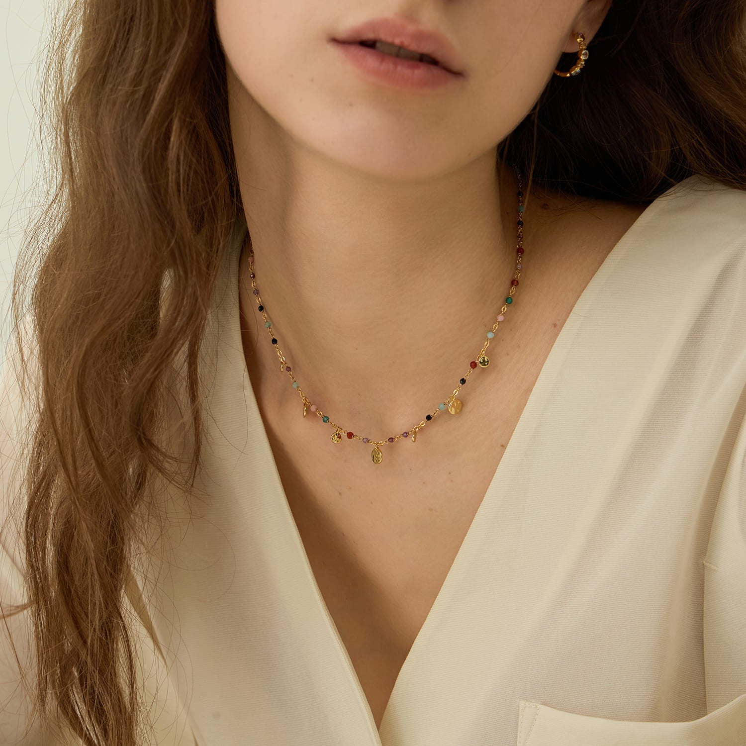Secret Garden Natural Gemstone Rainbow Beaded Necklace