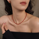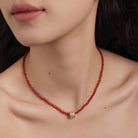 - **Agate**, the birthstone for May, is known for its grounding and stabilizing properties. Its calming energy is said to bring balance and harmony. The striking contrast between the gold chain and agate creates an eye-catching design, with the red beads adding a vibrant pop, making it good for parties, weddings, and other special occasions.