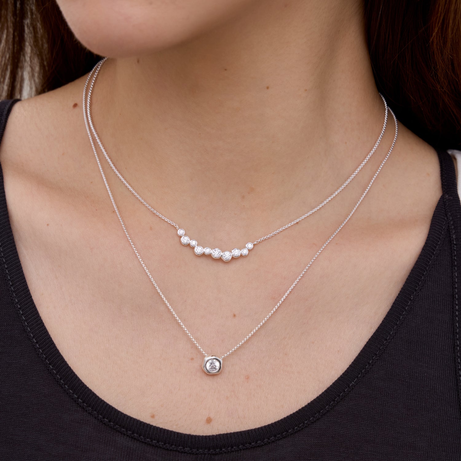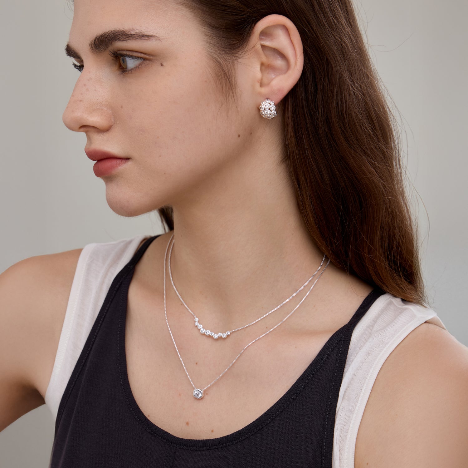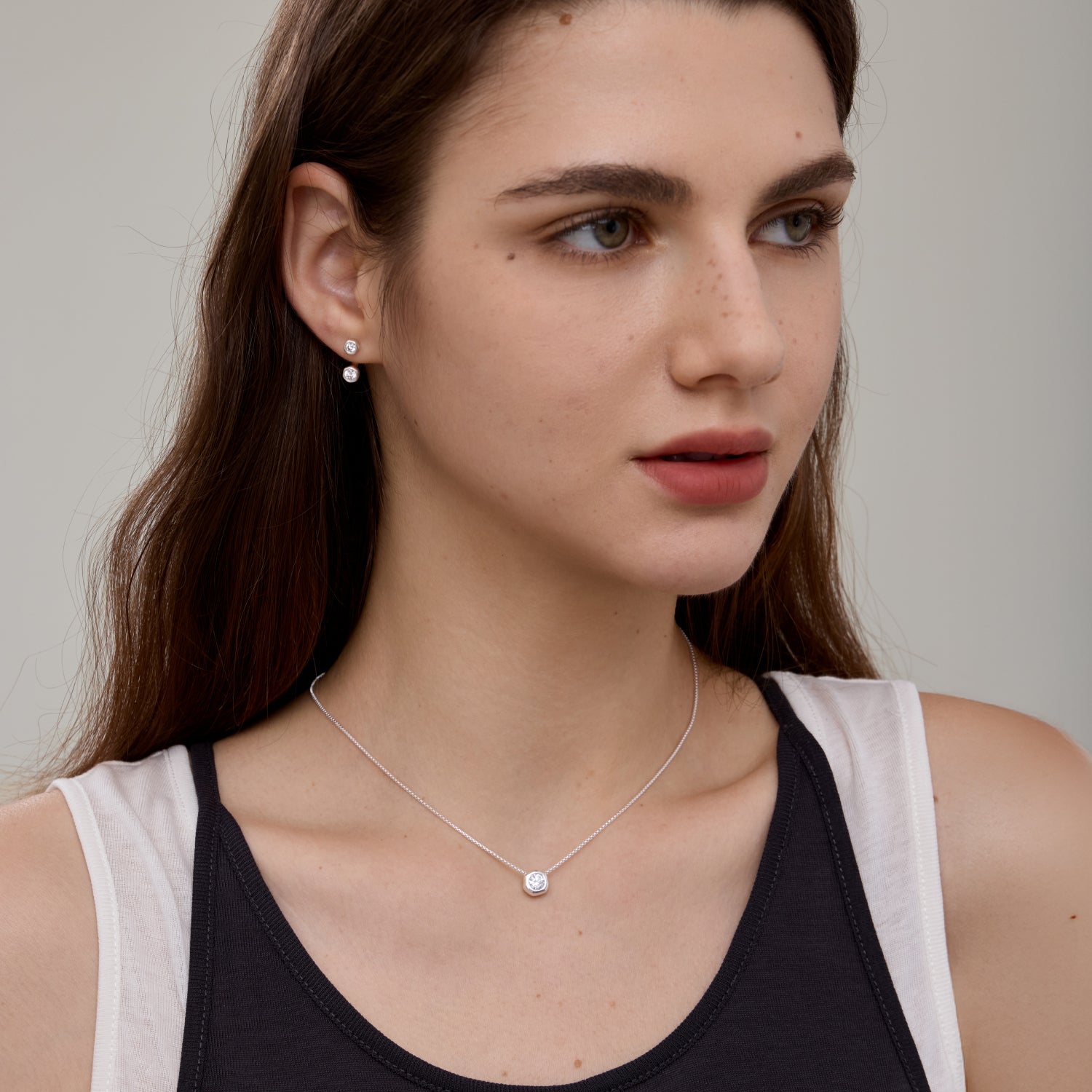 The cubic zirconia charm is designed to take center stage, paired with a round box chain in a thick silver finish. Smooth, structured, and minimal in all the right ways.