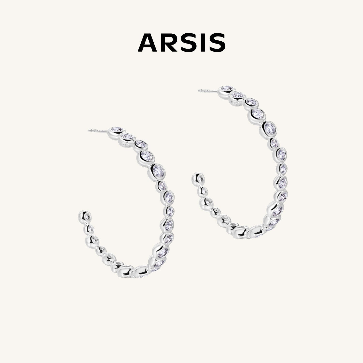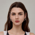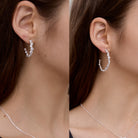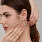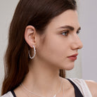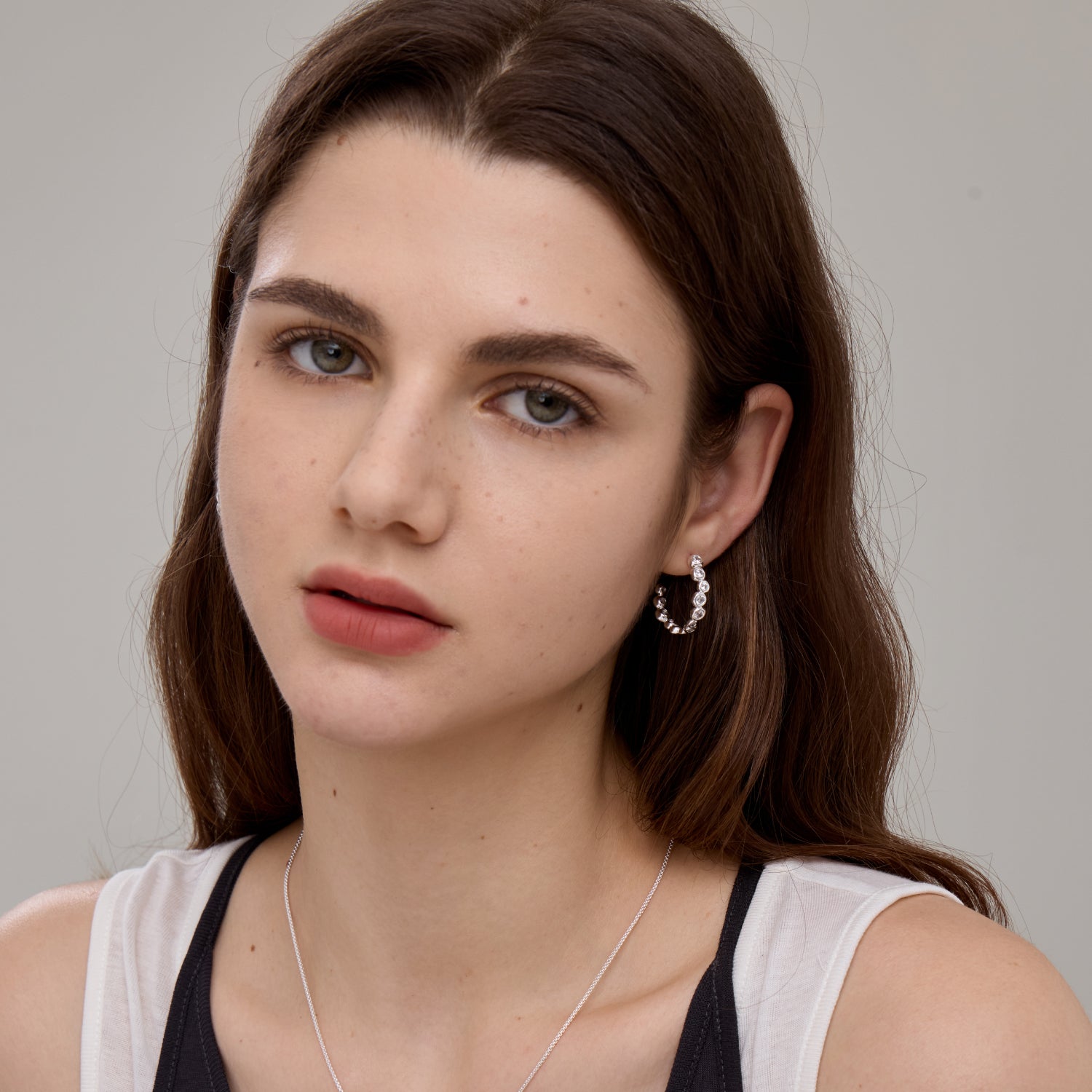 C-shaped statement hoops adorned with distinctive bobble detailing and light-catching thick silver-plated finish. Lightweight and comfortable, they bring bold personality without the heaviness. Available in two sizes. The oversized shape helps create the illusion of a smaller face. Pair them with a leather or pilot jacket for a bold, cool look, or wear them with a sweater for a chic, high-fashion style.