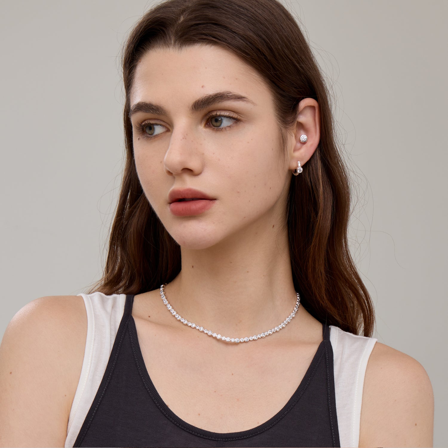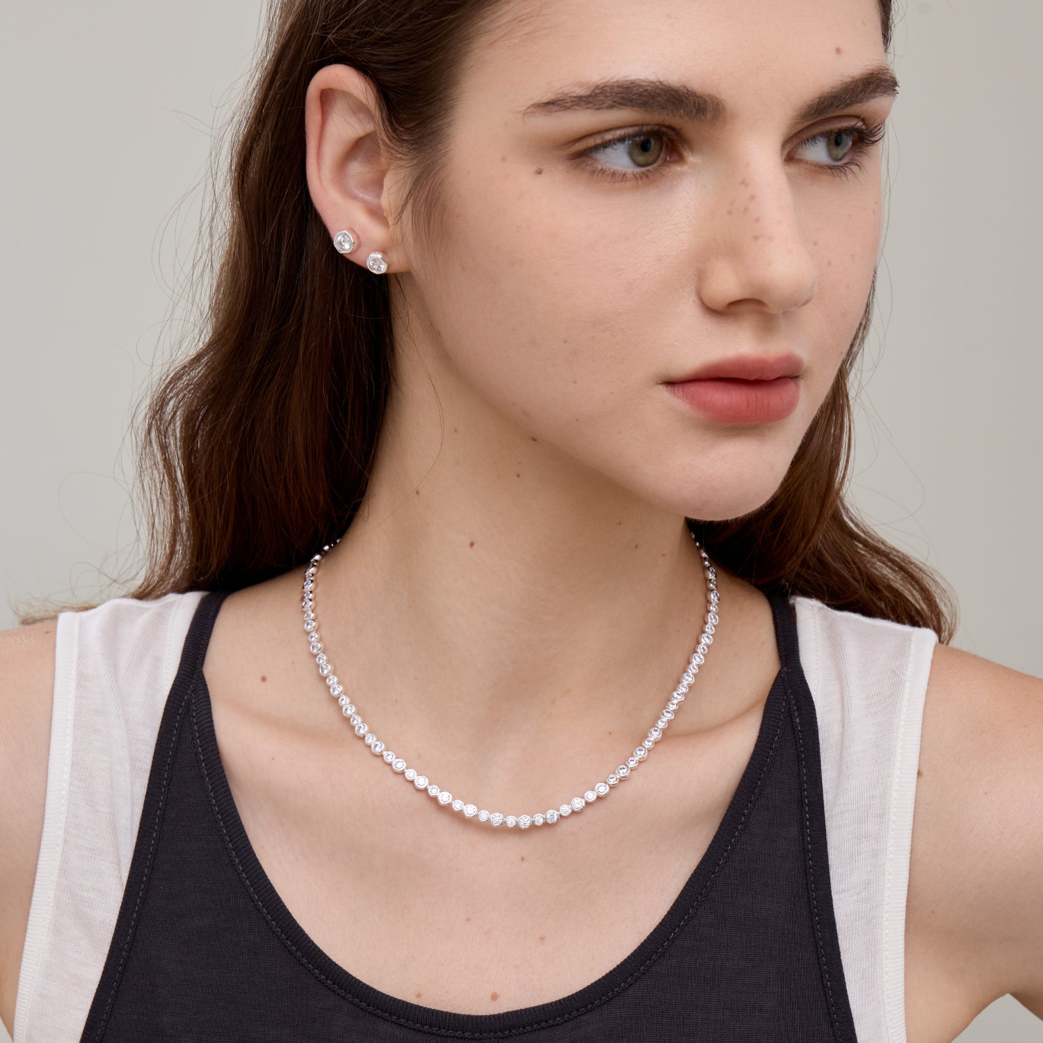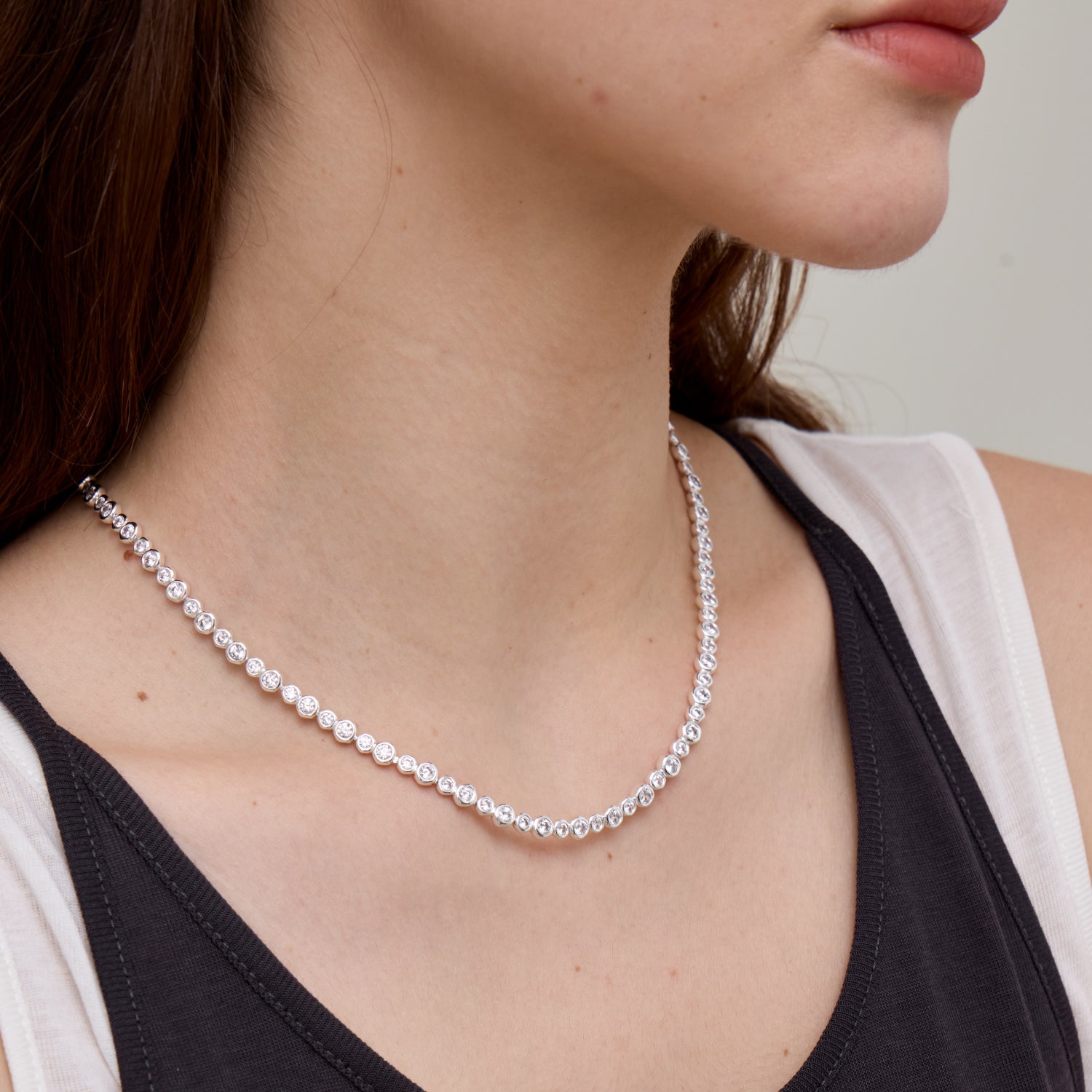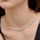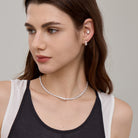 Crafted in a thick silver finish and adorned with sparkling cubic zirconia, this tennis necklace complements any style. Laying flush along your neckline for an elegantly daring profile. Perfect for daily wear, pair it with the matching bracelet for a complete set.