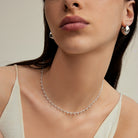 This earring design embodies both a timeless and contemporary aesthetic, with a sleek and refined circle that exudes pure and fashionable beauty. It's versatile enough to be worn casually or dressed up for formal occasions and effortlessly showcases the wearer's elegance and confidence.