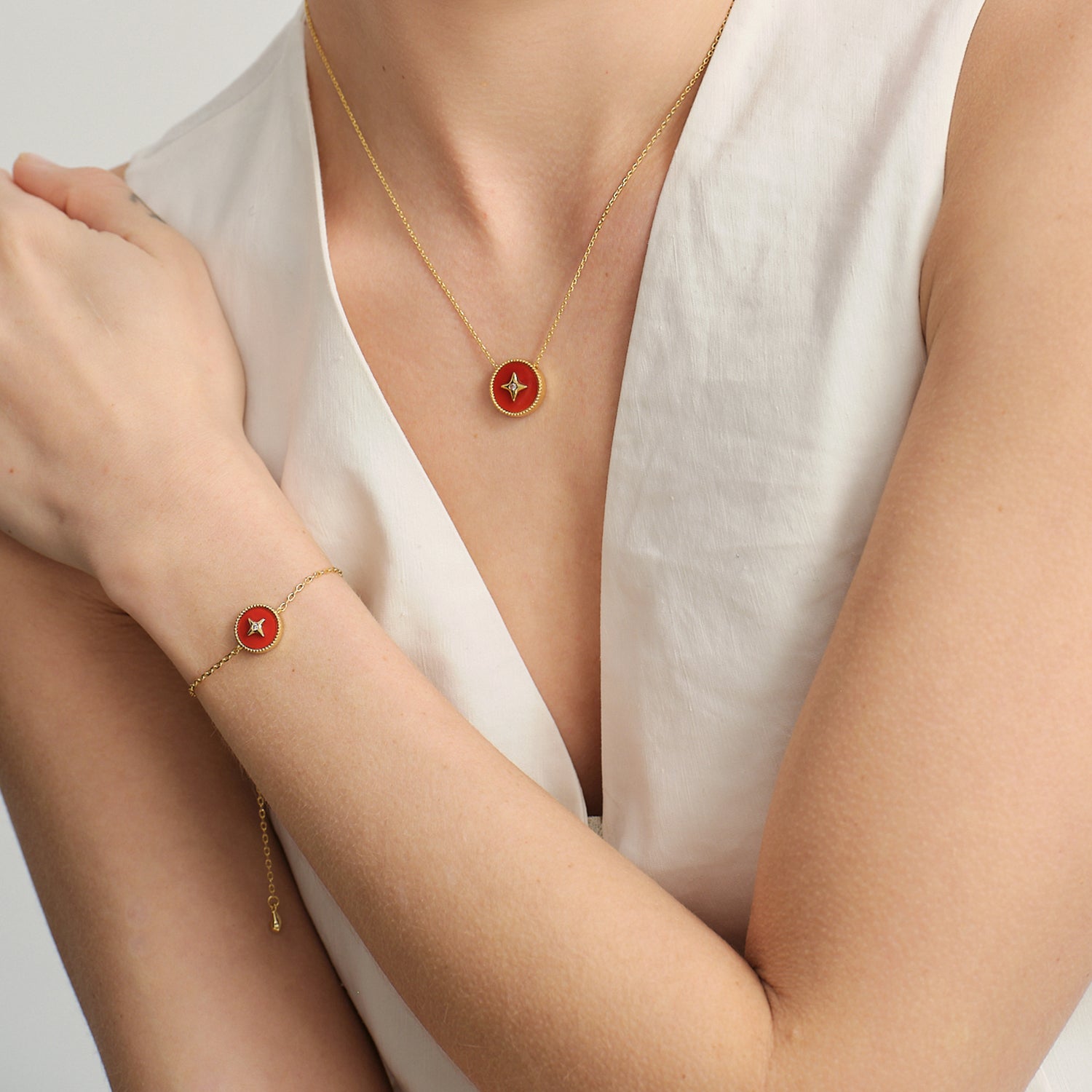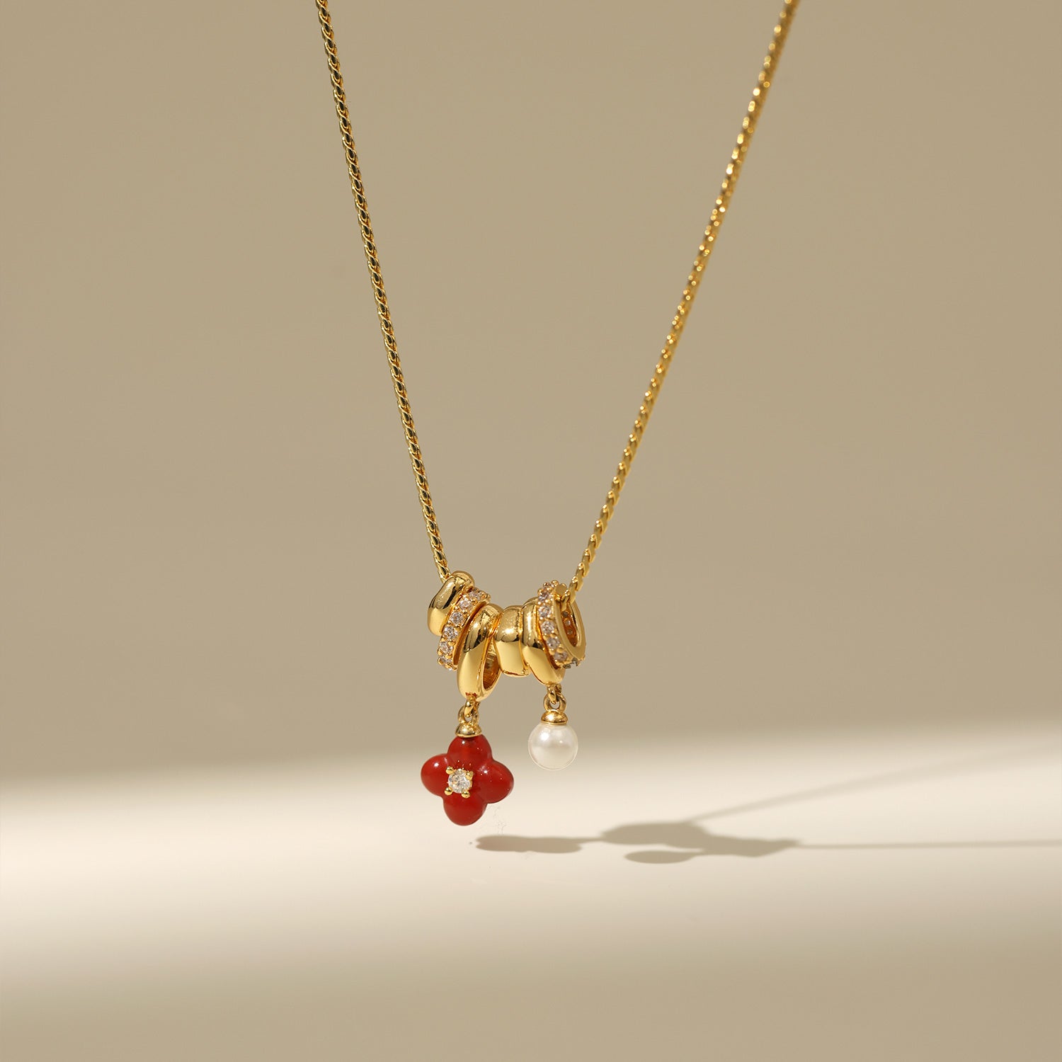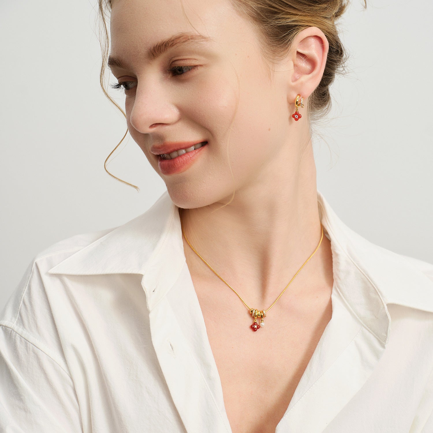Gold-Tone Duo Hoop Earrings with Red Agate Clover
