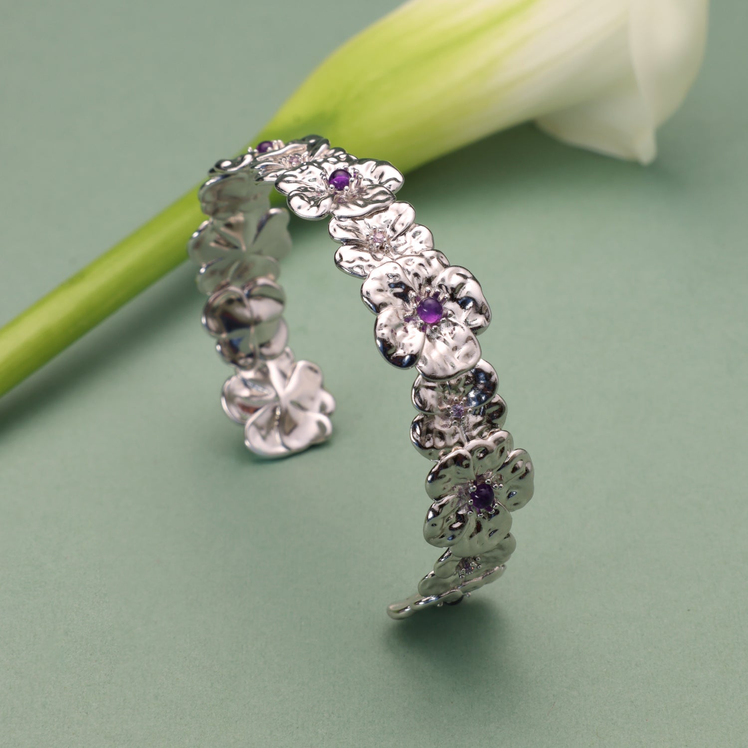 Gardenia Amethyst Thin Cuff Bracelet