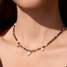 This necklace features tiger’s eye beads, pearls, and cubic zirconia. A delicate leaf charm adds a touch of natural vitality. Wear it on its own for a classic look, or pair it with other pieces from the Little Forest Collection for a complete ensemble.