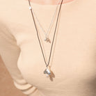 Part of the Little Forest Collection, this twin-layer necklace features an outer layer features a long cord with a playful mushroom pendant—perfect for pairing with cozy sweaters. The inner layer showcases a delicate cable chain, highlighted by a smaller pine cone charm.