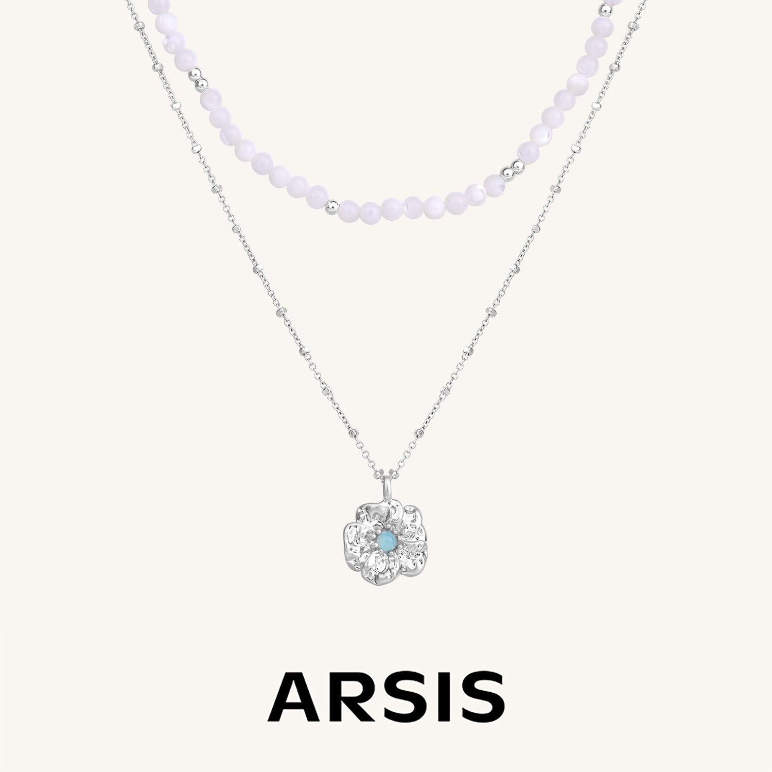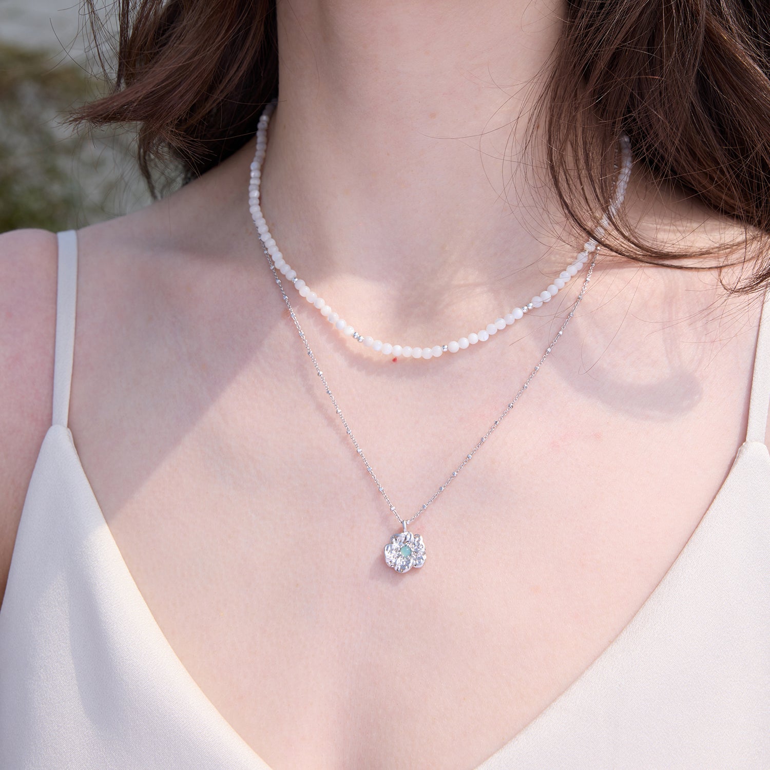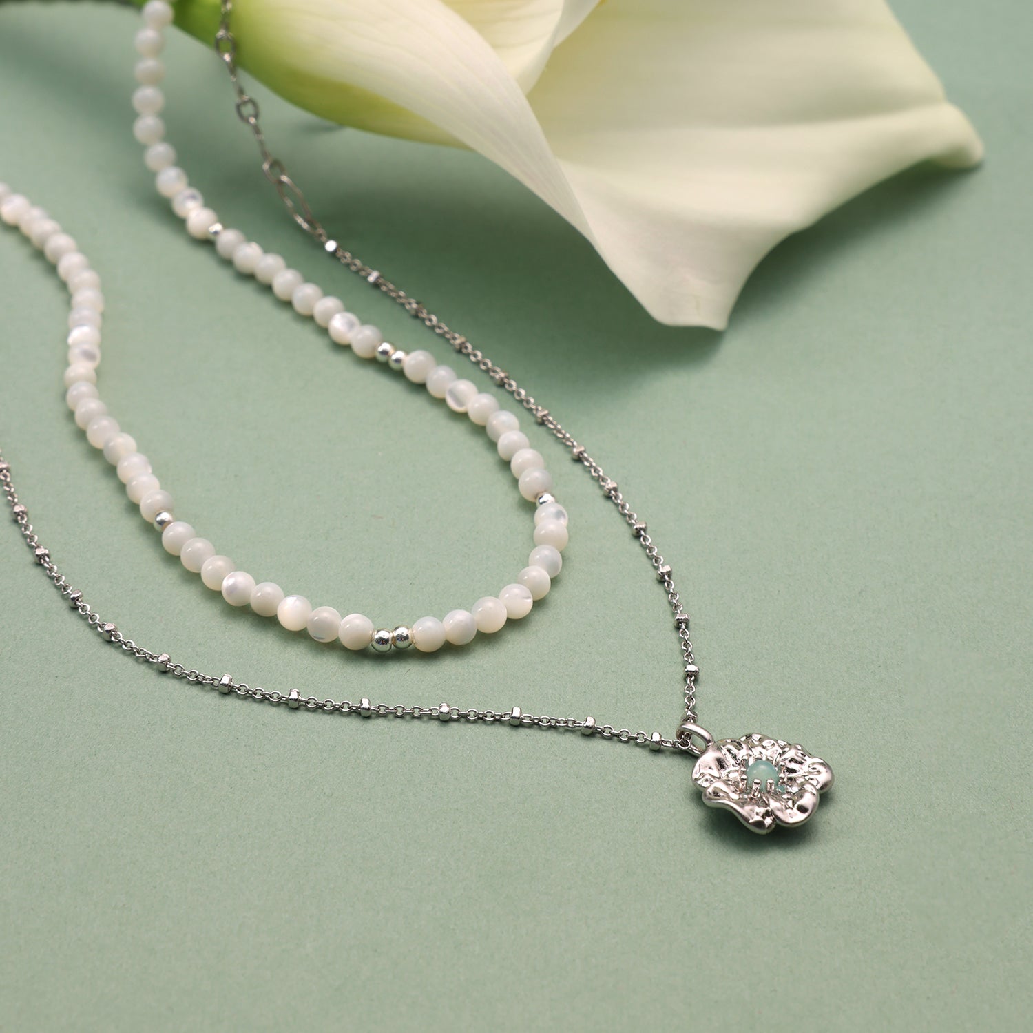 Gardenia Double Chain Necklace with Mother-of-Pearl