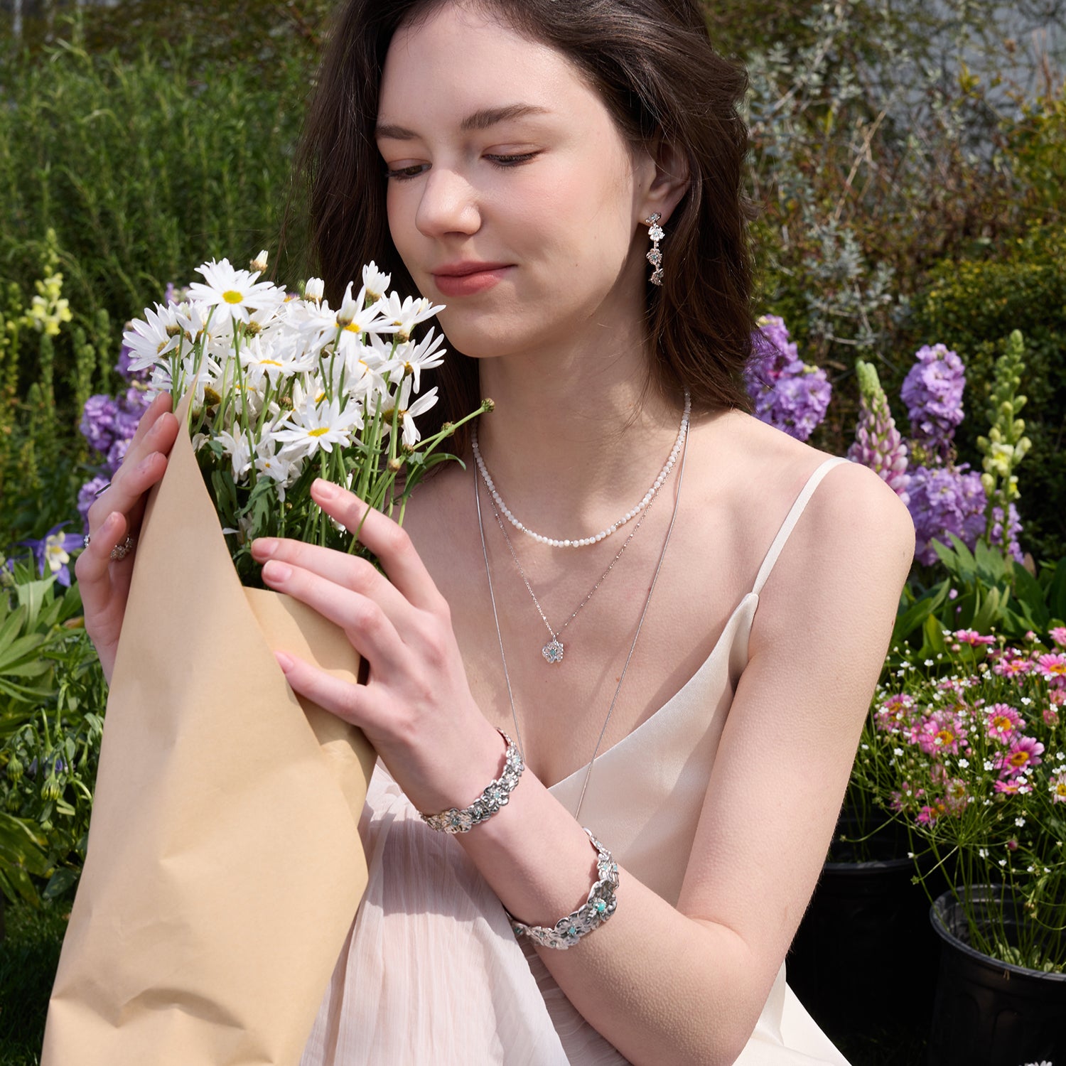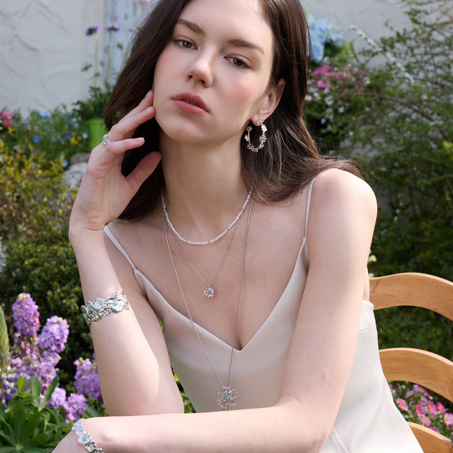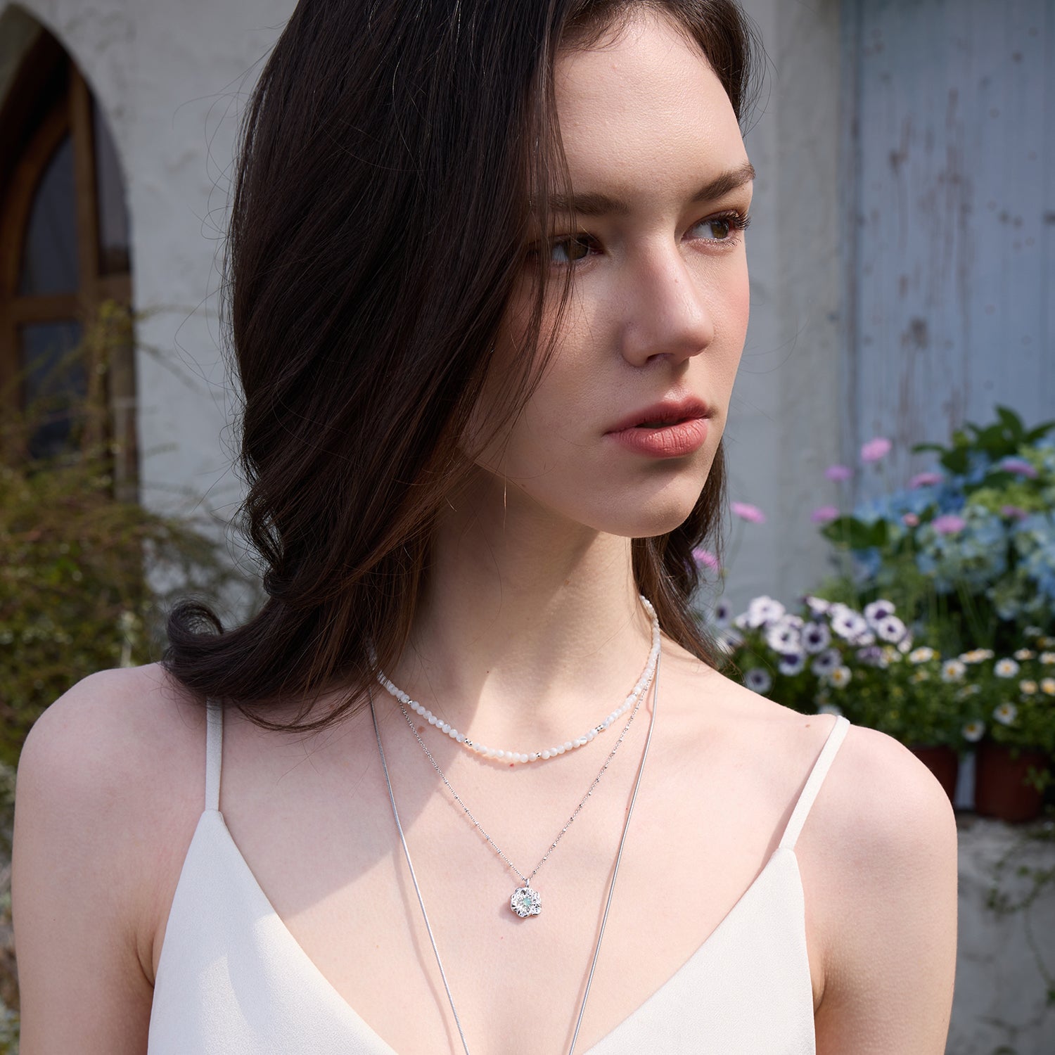 Gardenia Double Chain Necklace with Mother-of-Pearl