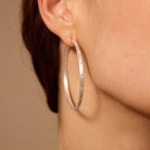 Oversized hoops adorned with cubic zirconia detailing and a light-catching finish bring bold personality without the heaviness. Pair them with a leather or pilot jacket for a bold, cool look, or wear them with a sweater for a chic, high-fashion style.