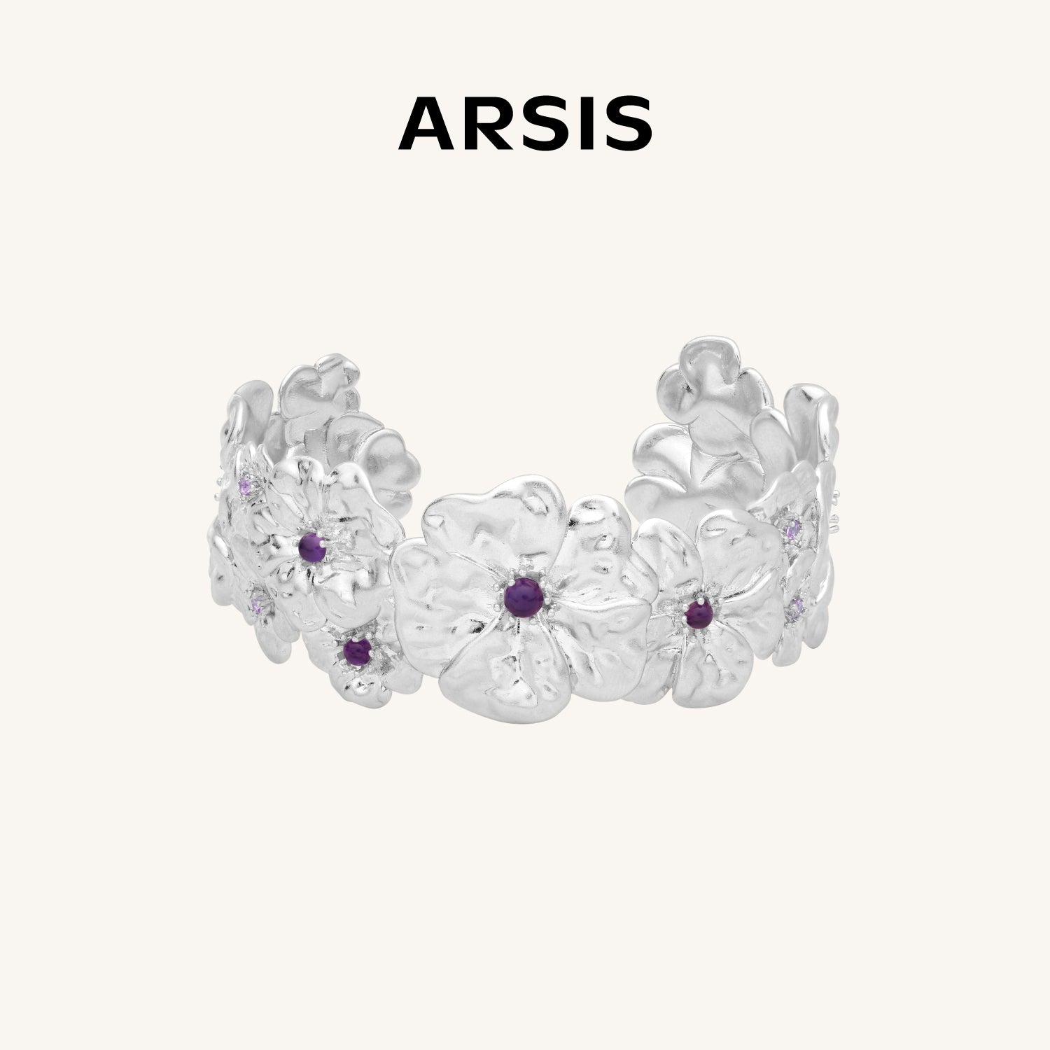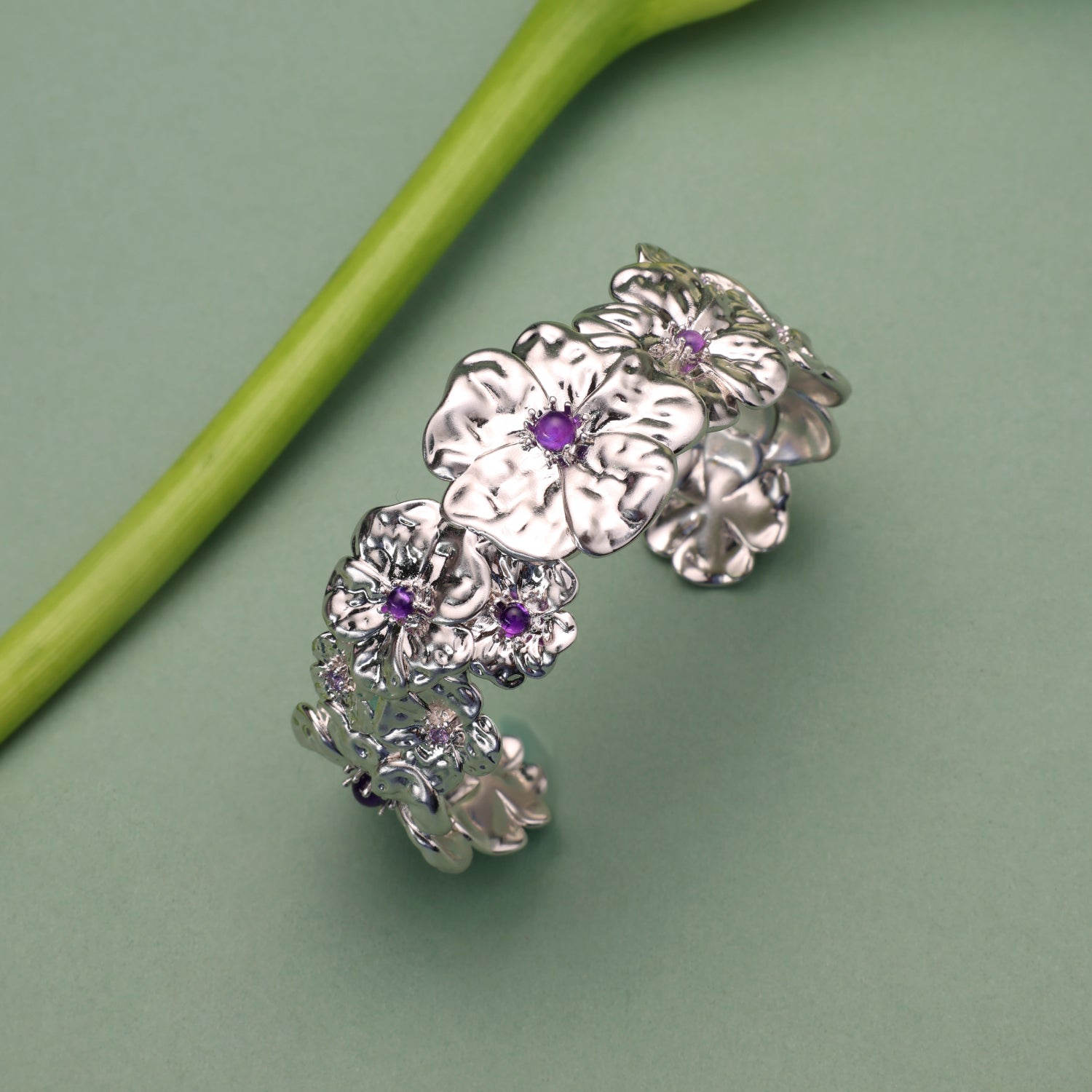 Gardenia Amethyst Wide Cuff Bracelet