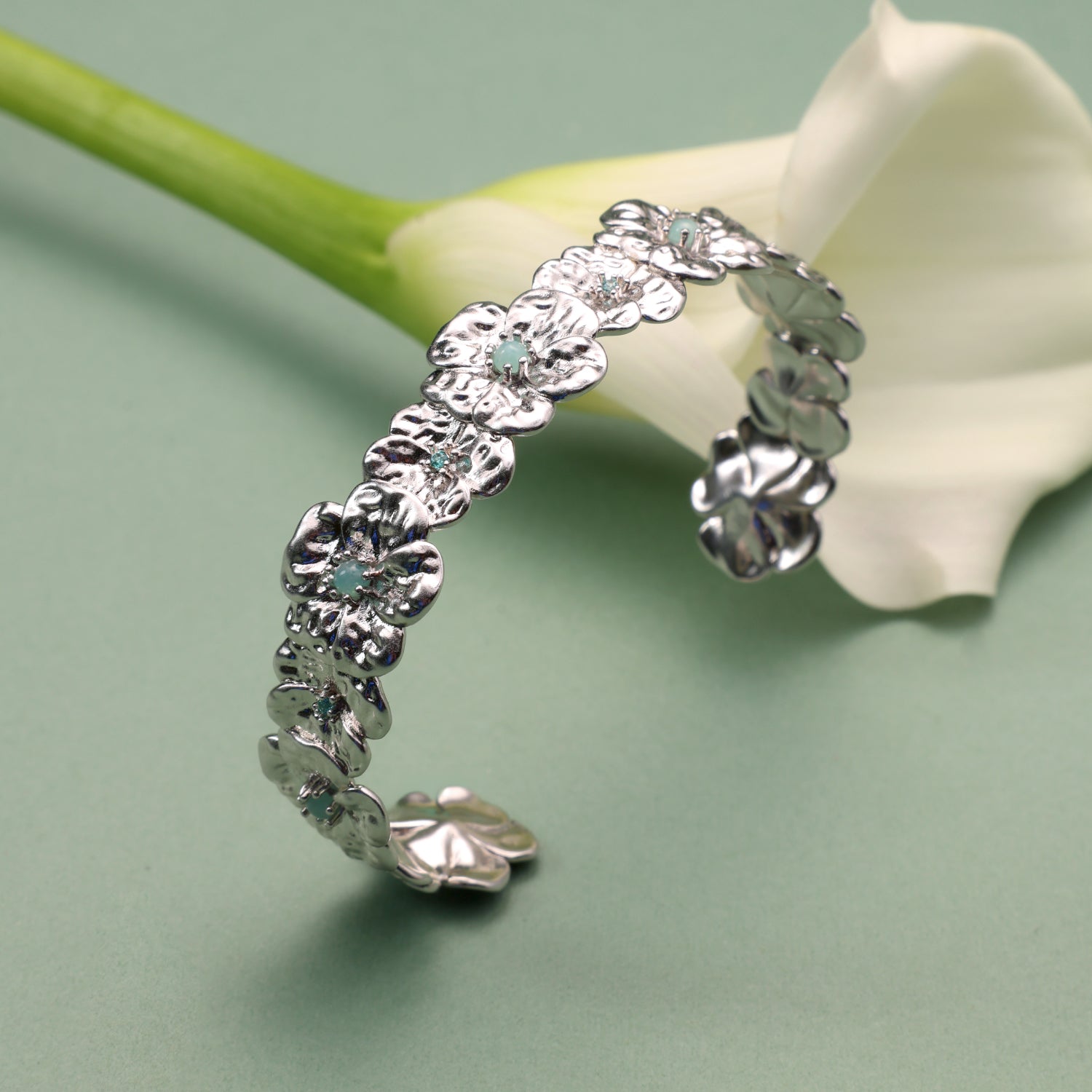 Gardenia Amazonite Thin Cuff Bracelet
