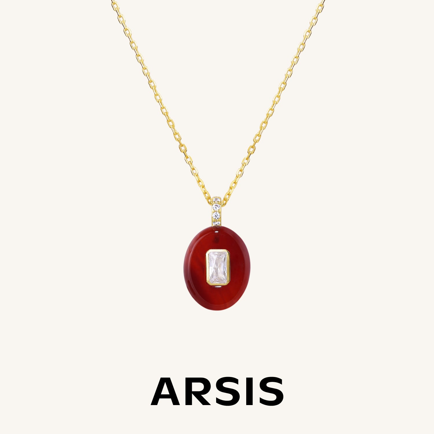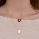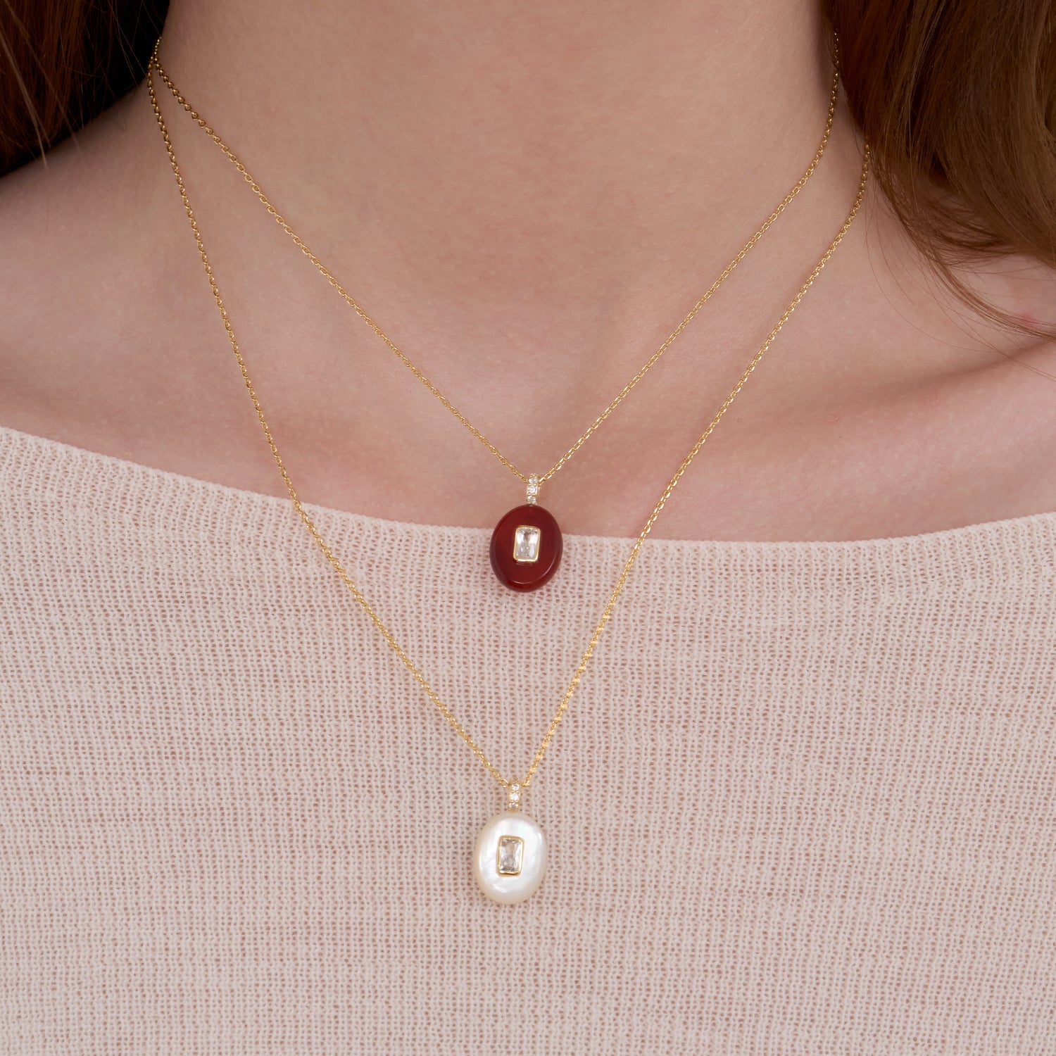 The name Felicity, meaning "good fortune" in Latin, beautifully complements this necklace featuring a vibrant red agate pendant, elegantly suspended from a cable chain plated in 18K gold over copper. Red agate is known to attract luck into life. Its design allows it to be layered with other pendant necklaces from the Secret Garden collection for a chic, layered look.