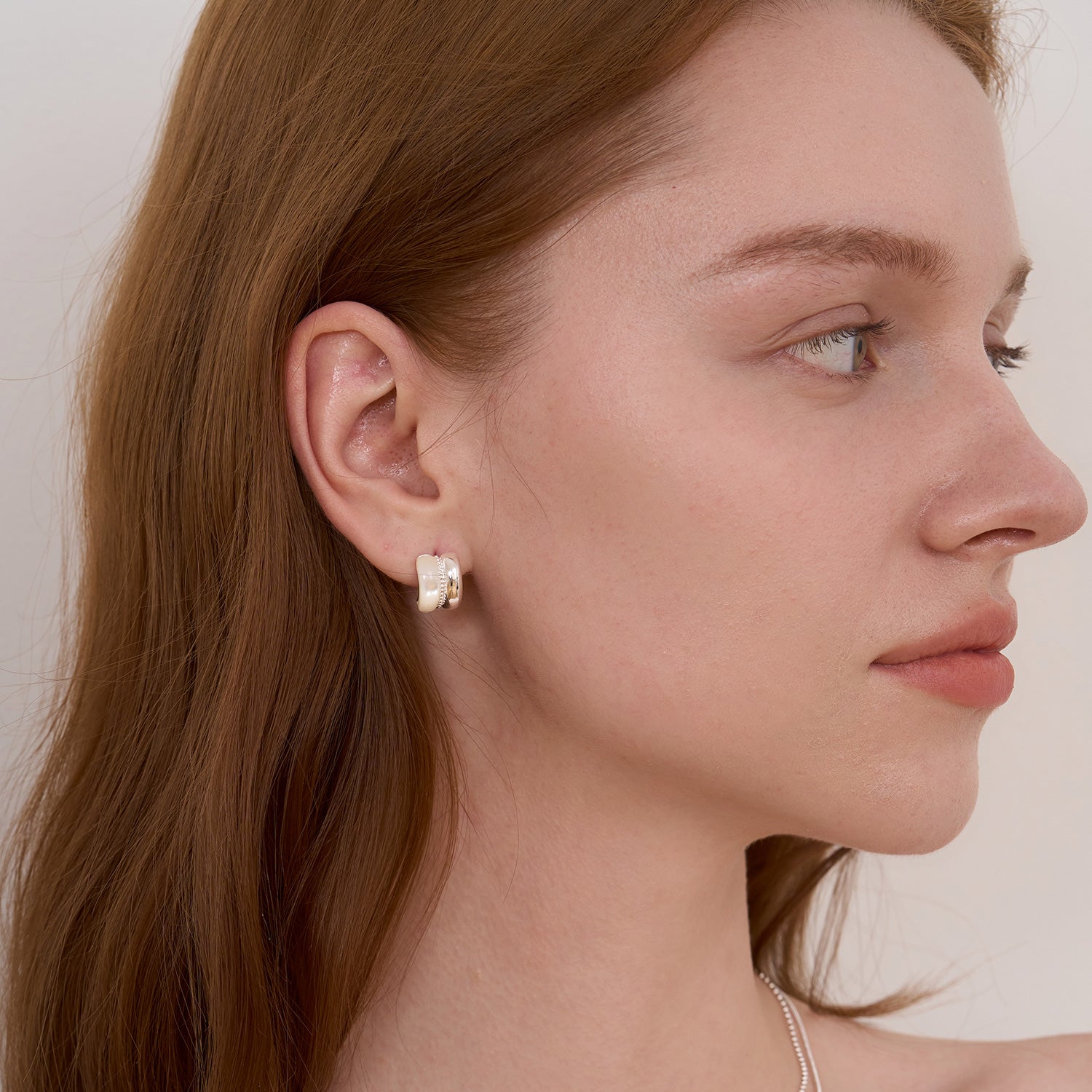 Reese Mother-of-Pearl Pavé Huggie Earrings