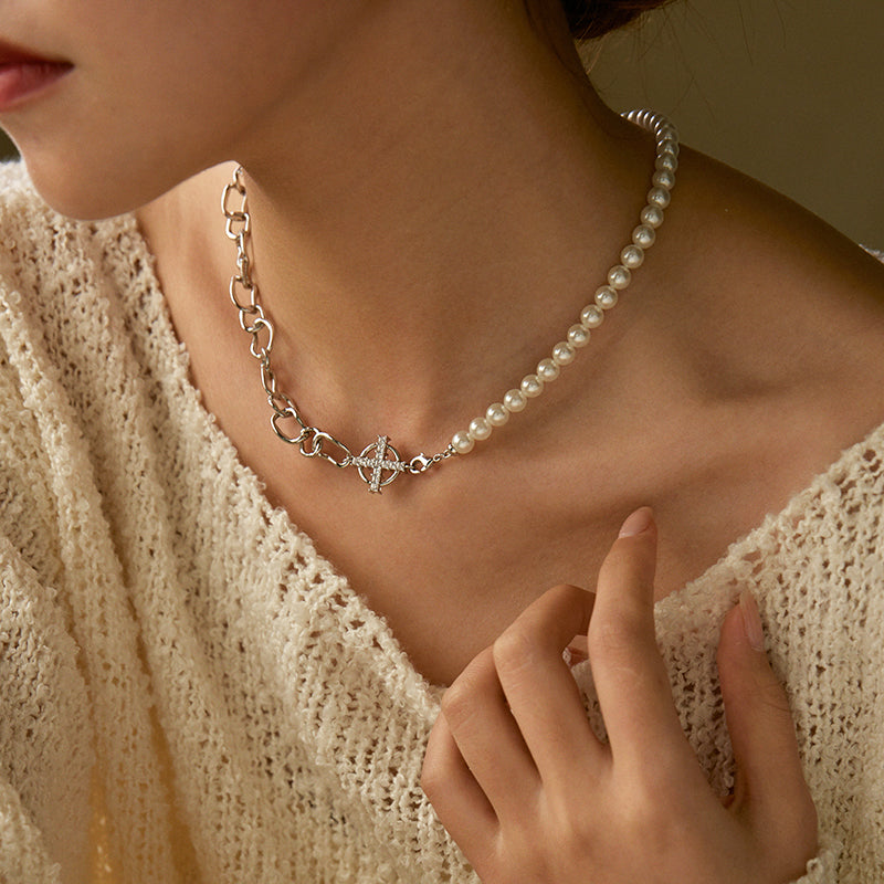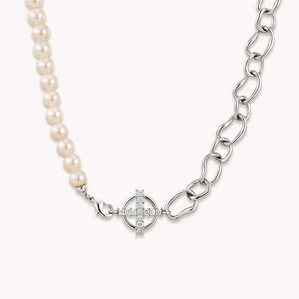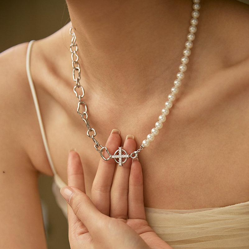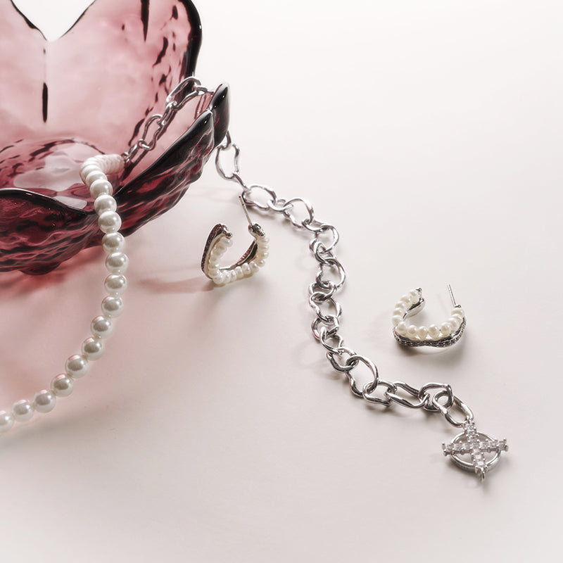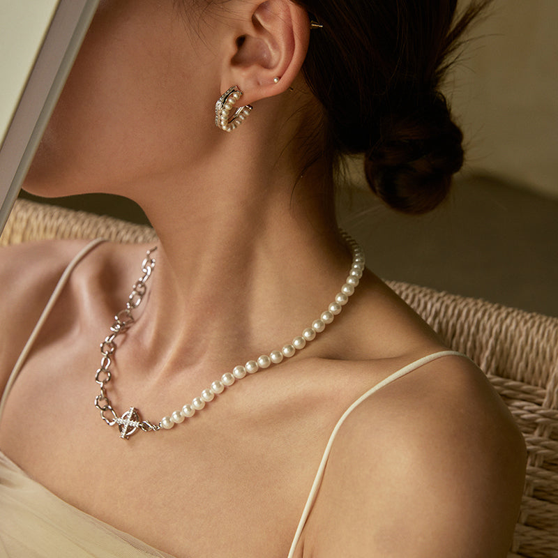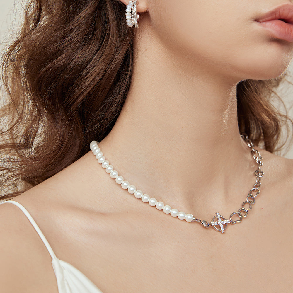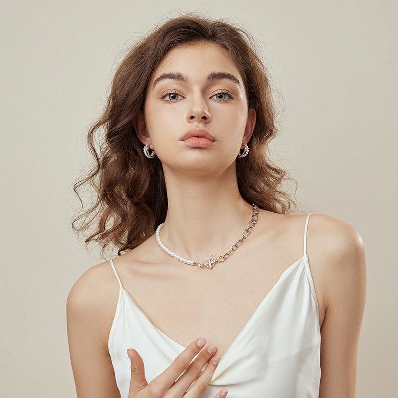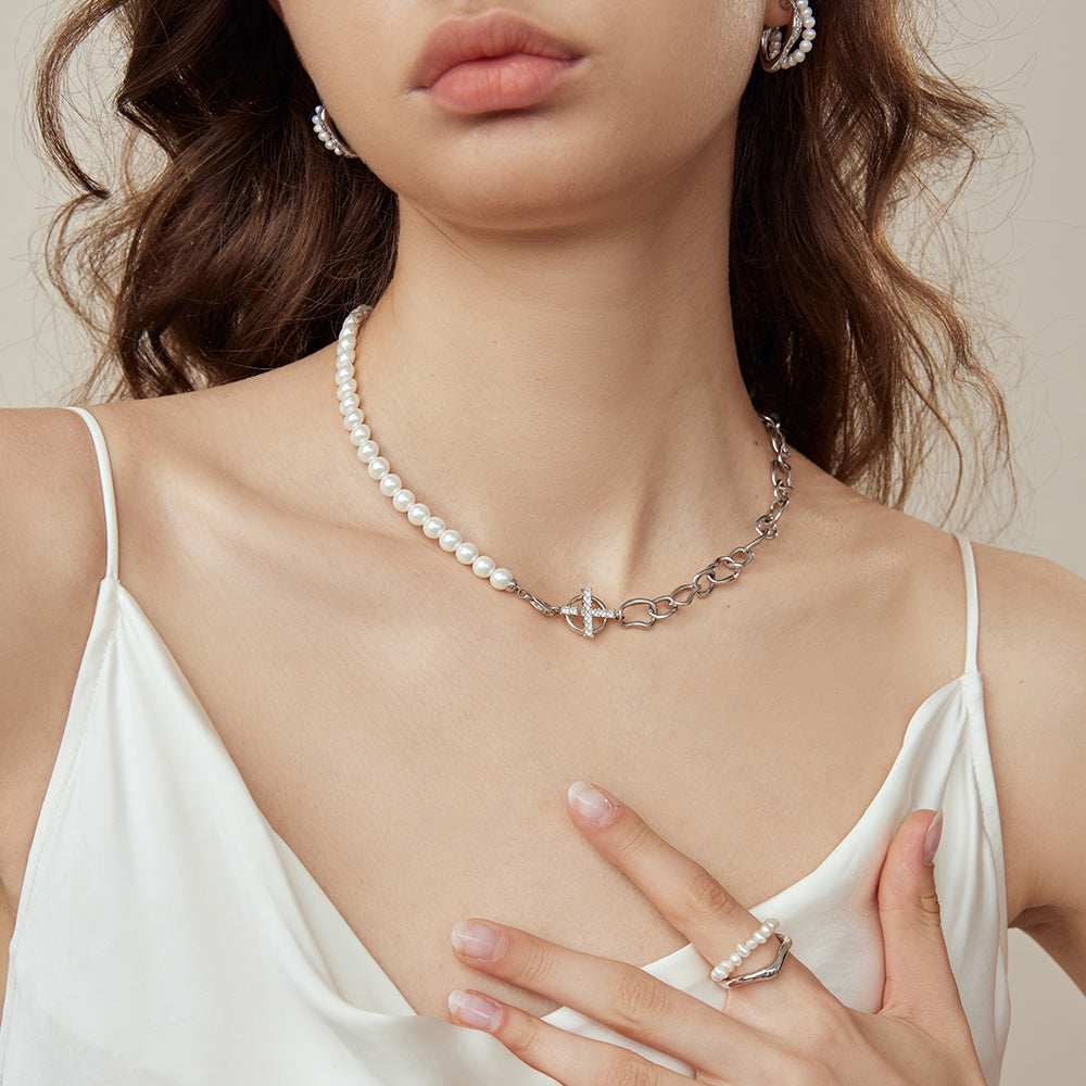 Presentamos nuestro elegante collar patchwork de cadena de perlas, una hermosa pieza de joyería elaborada con cobre bañado en oro de alta calidad y perlas de concha. La cuidada selección de tamaños de las perlas contribuye al equilibrio y la belleza del collar.