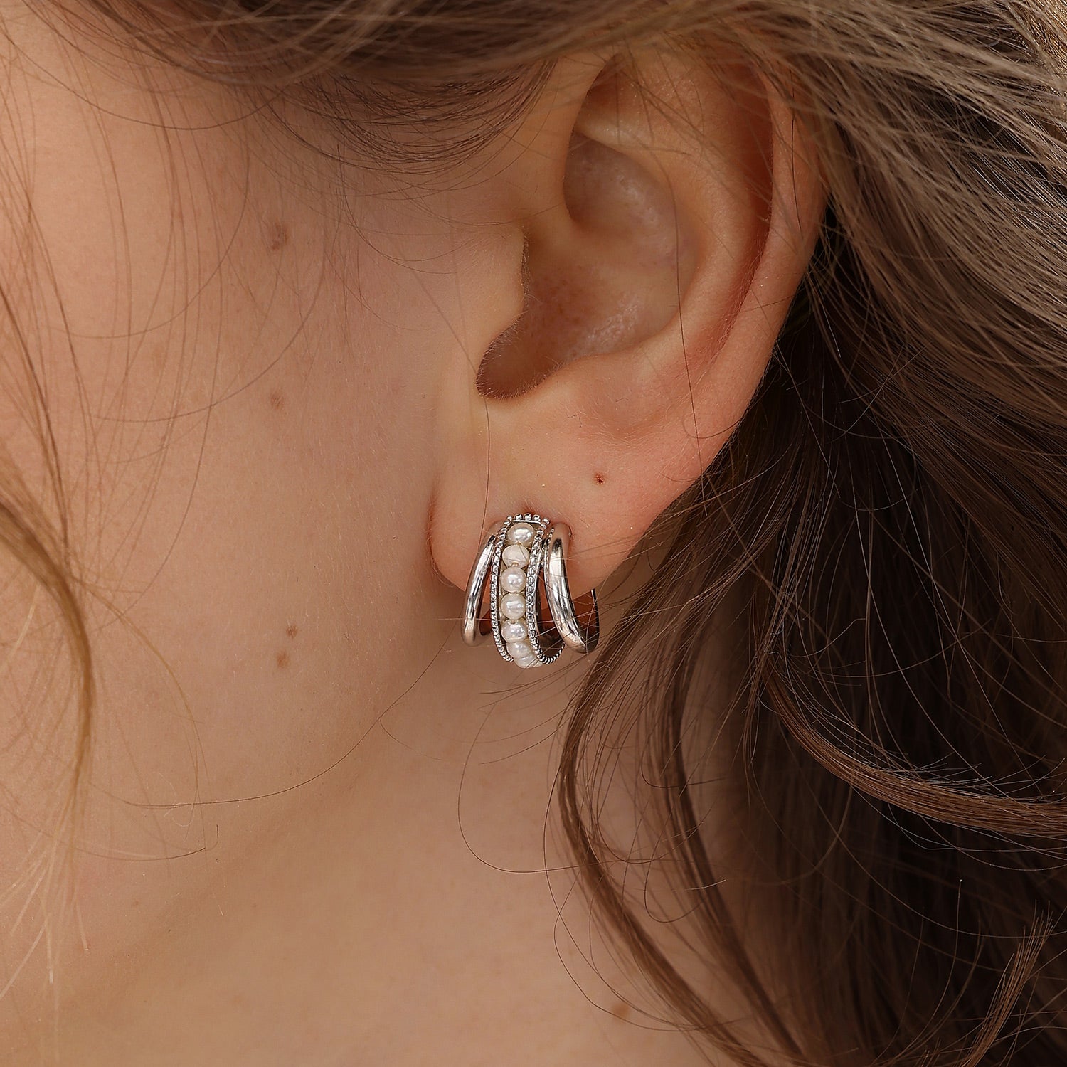 Nina Pearl Multi Hoop Earrings