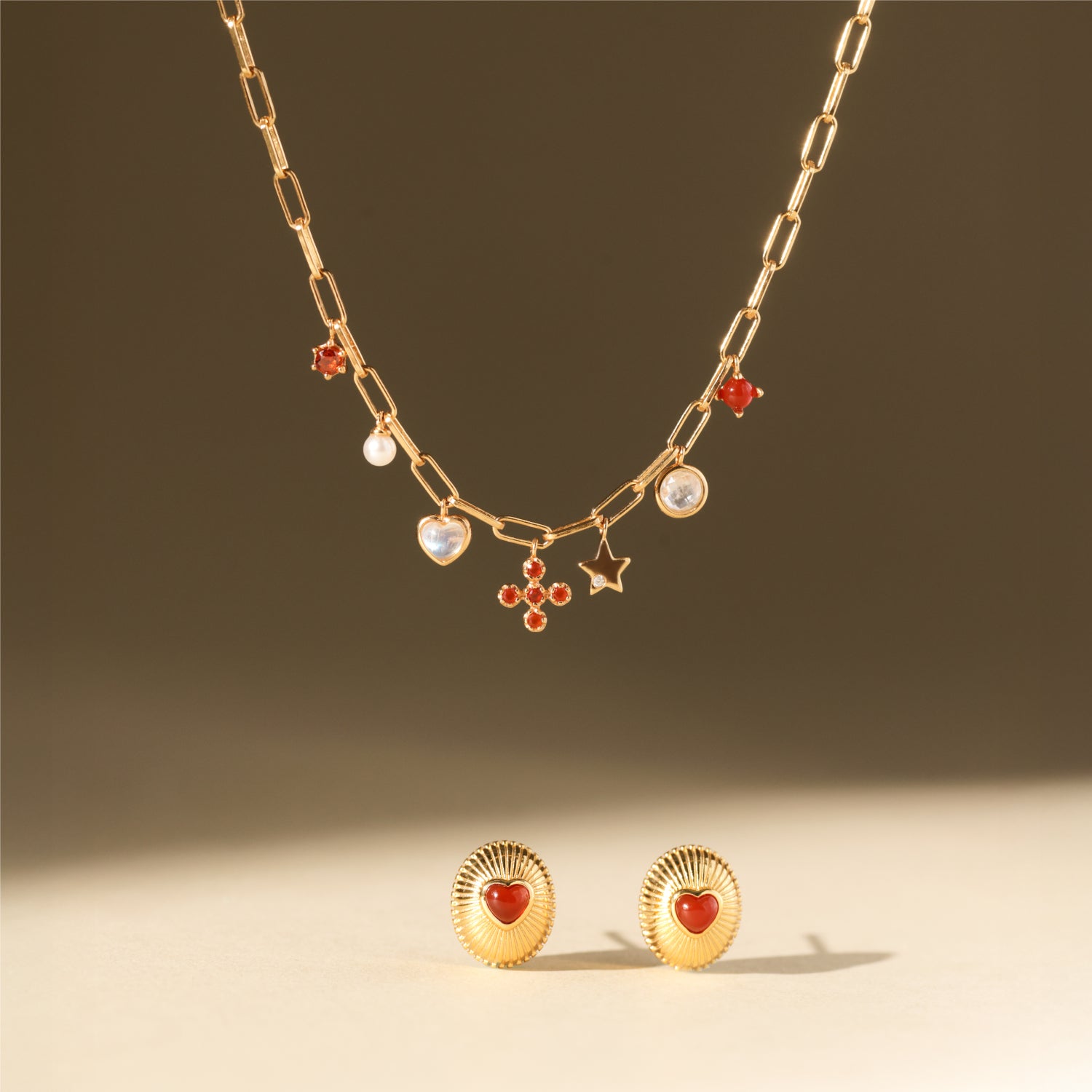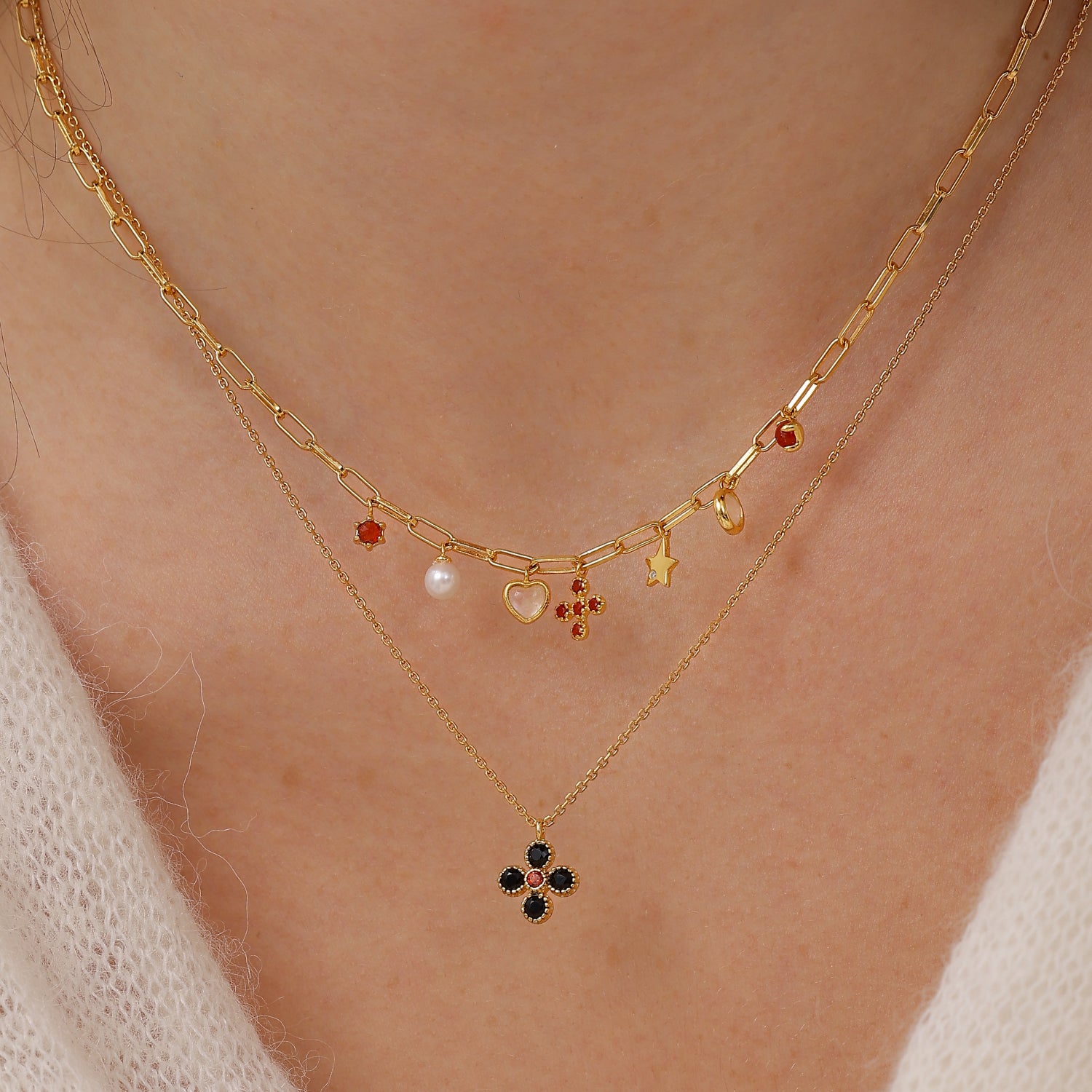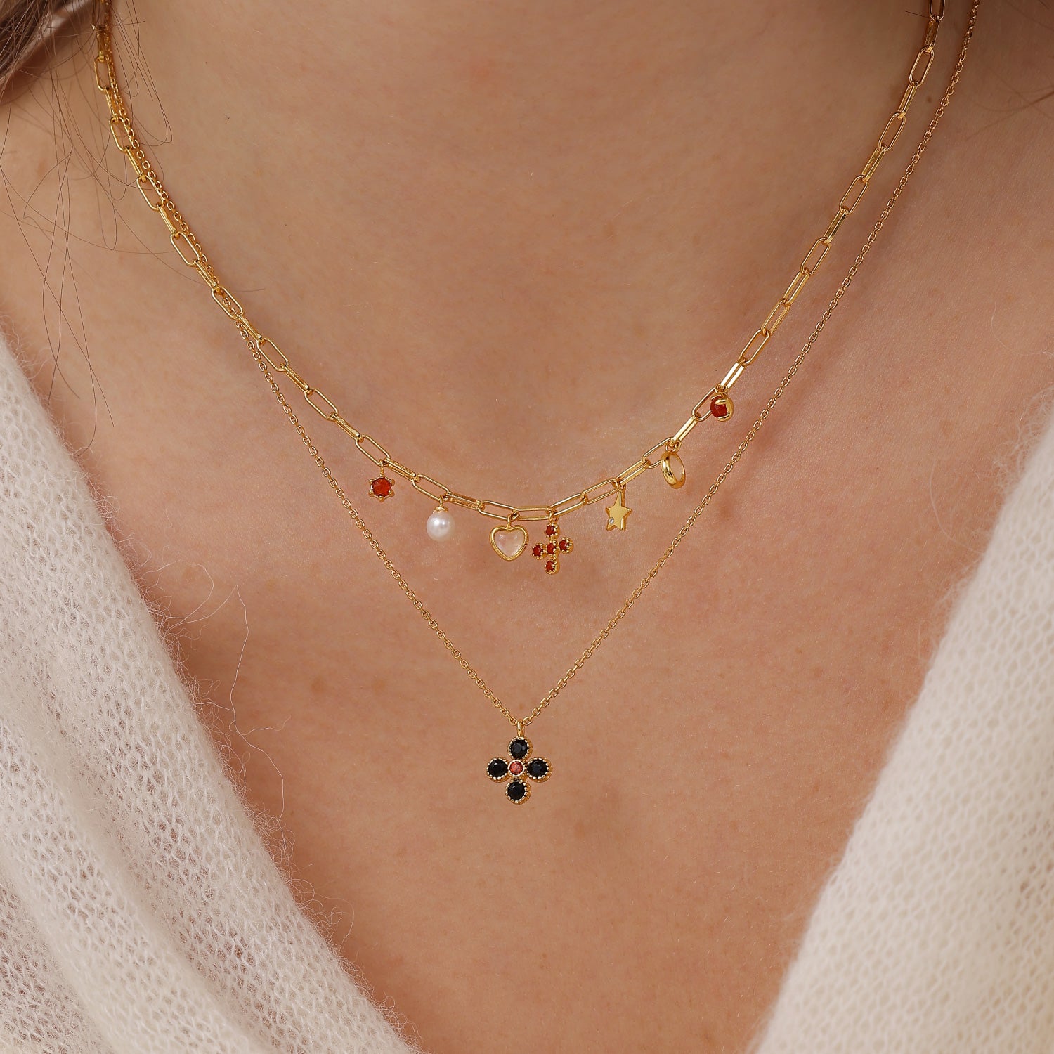Collar de múltiples piedras preciosas con estrellas cruzadas