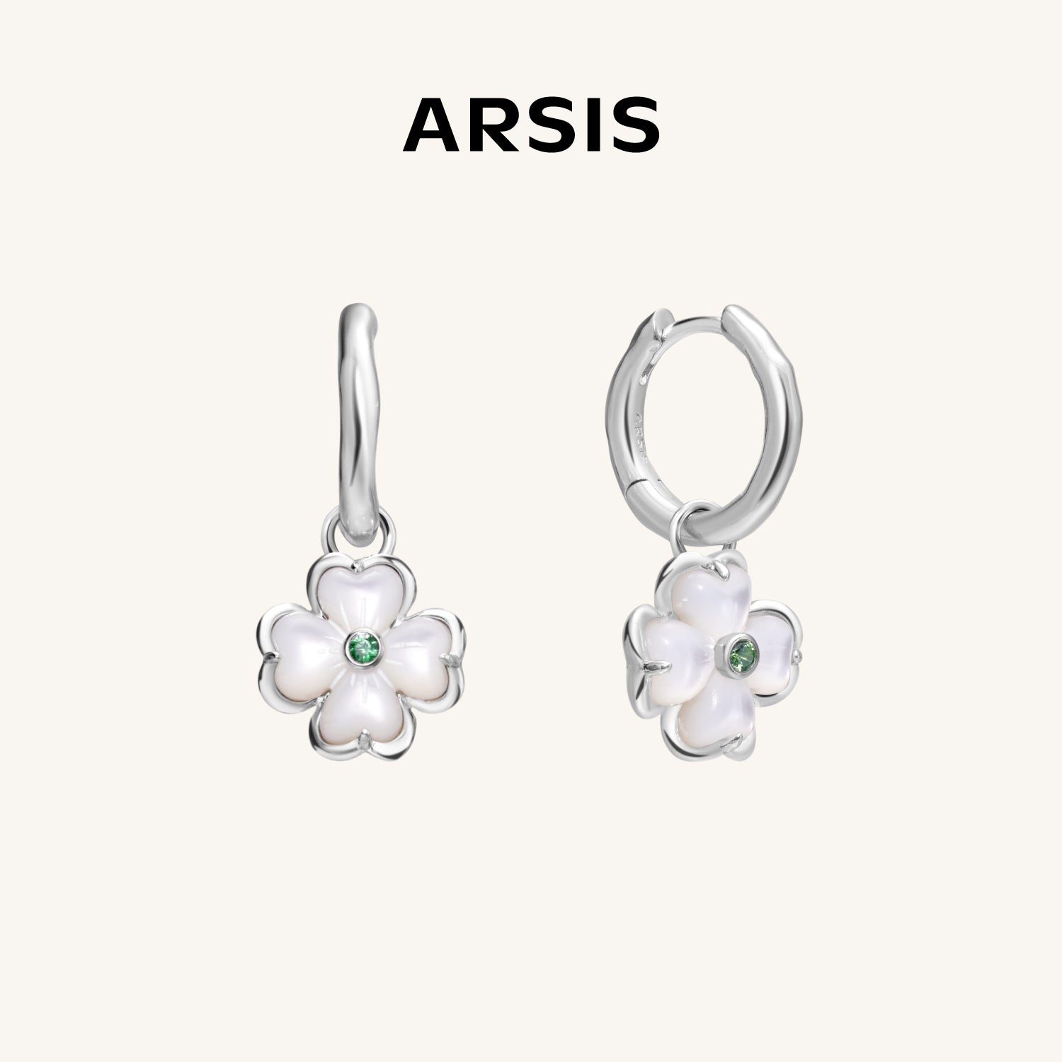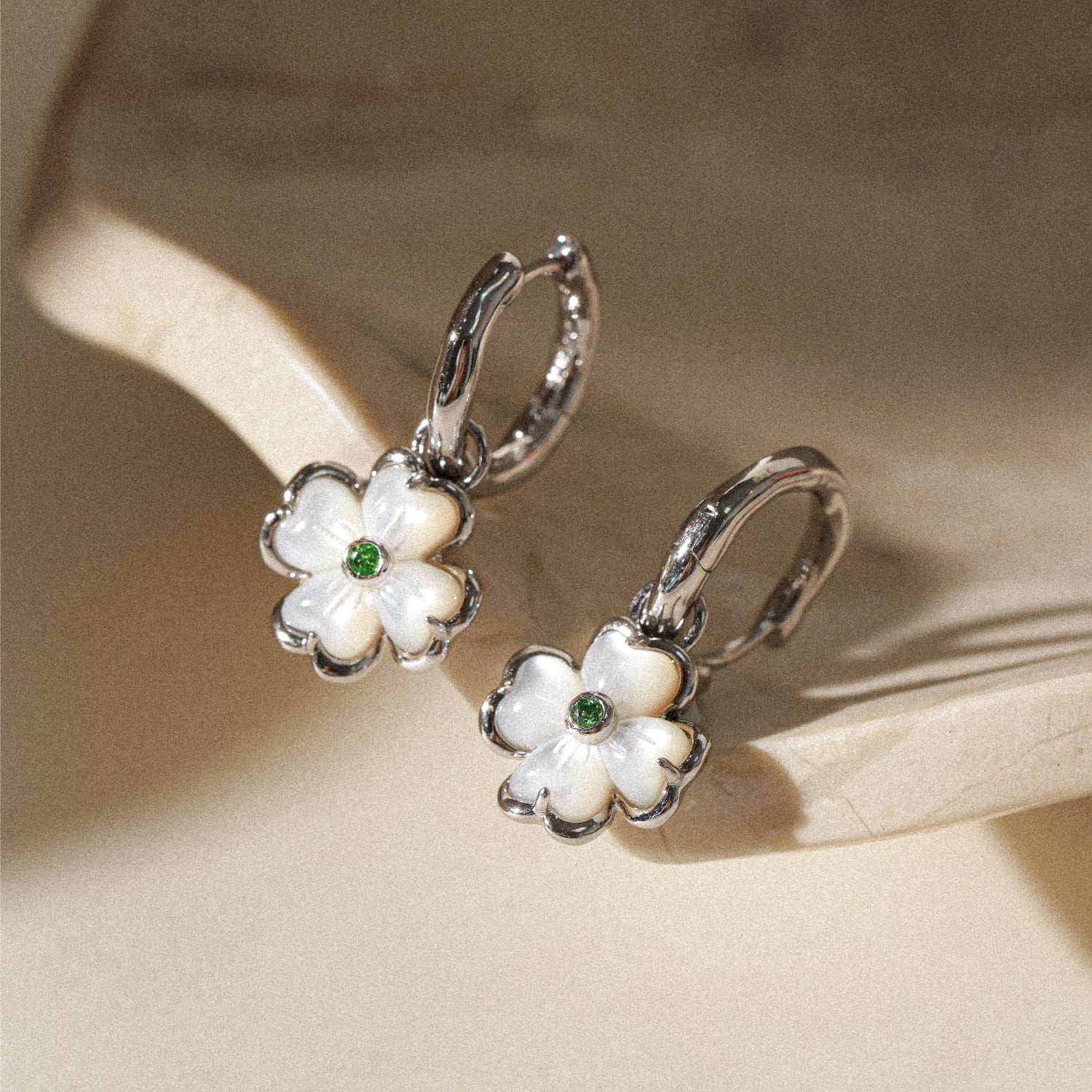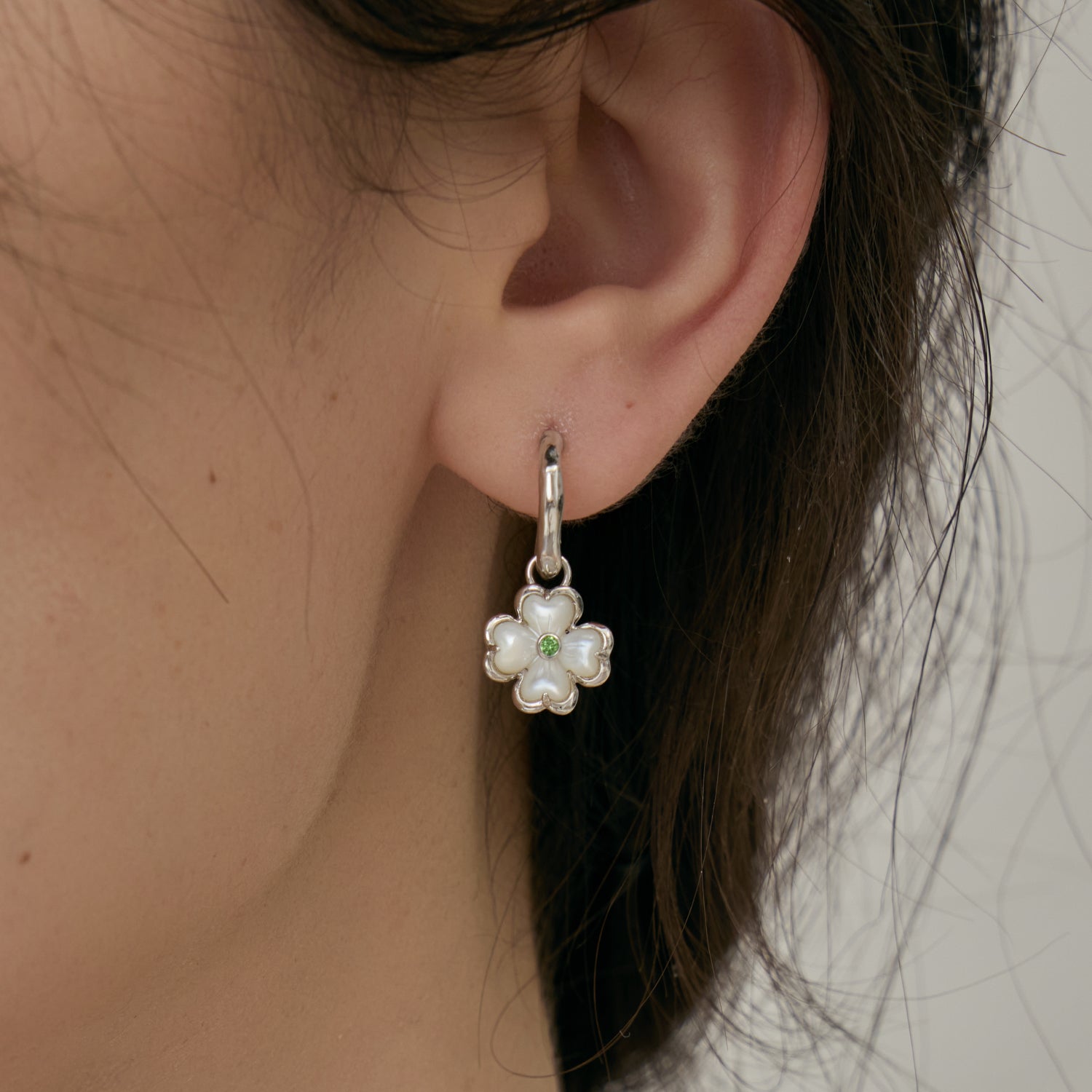 Pendientes con dije de trébol de perla en flor