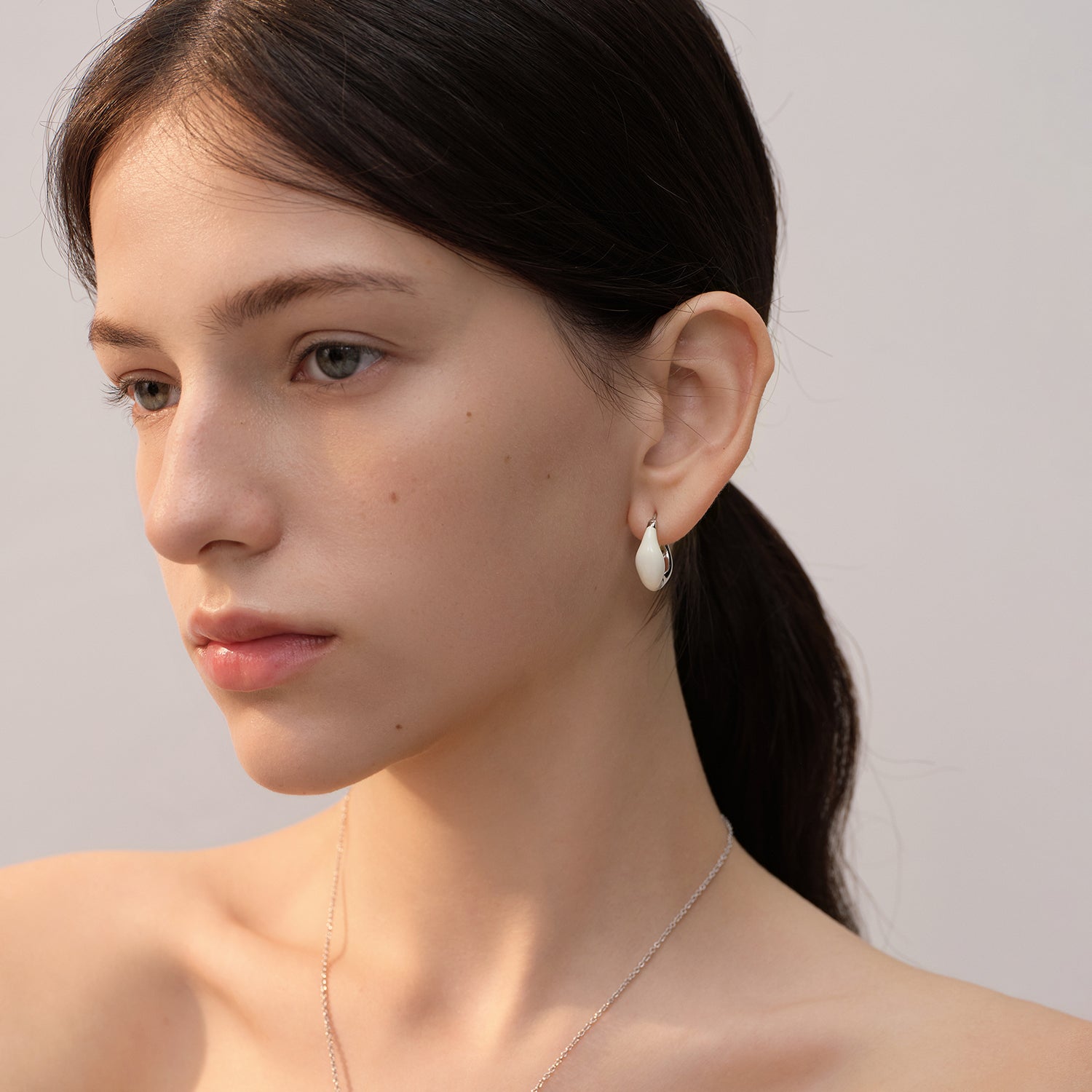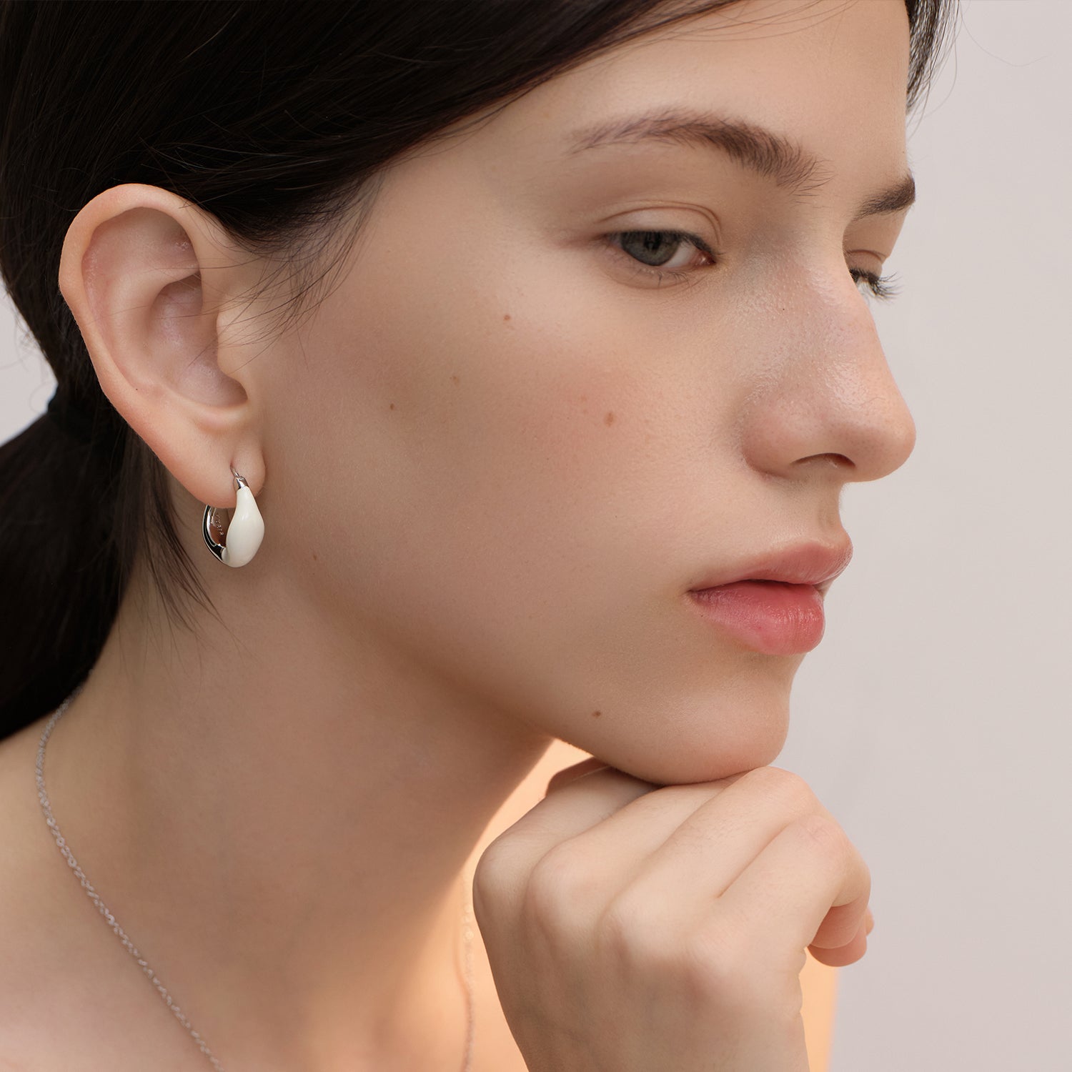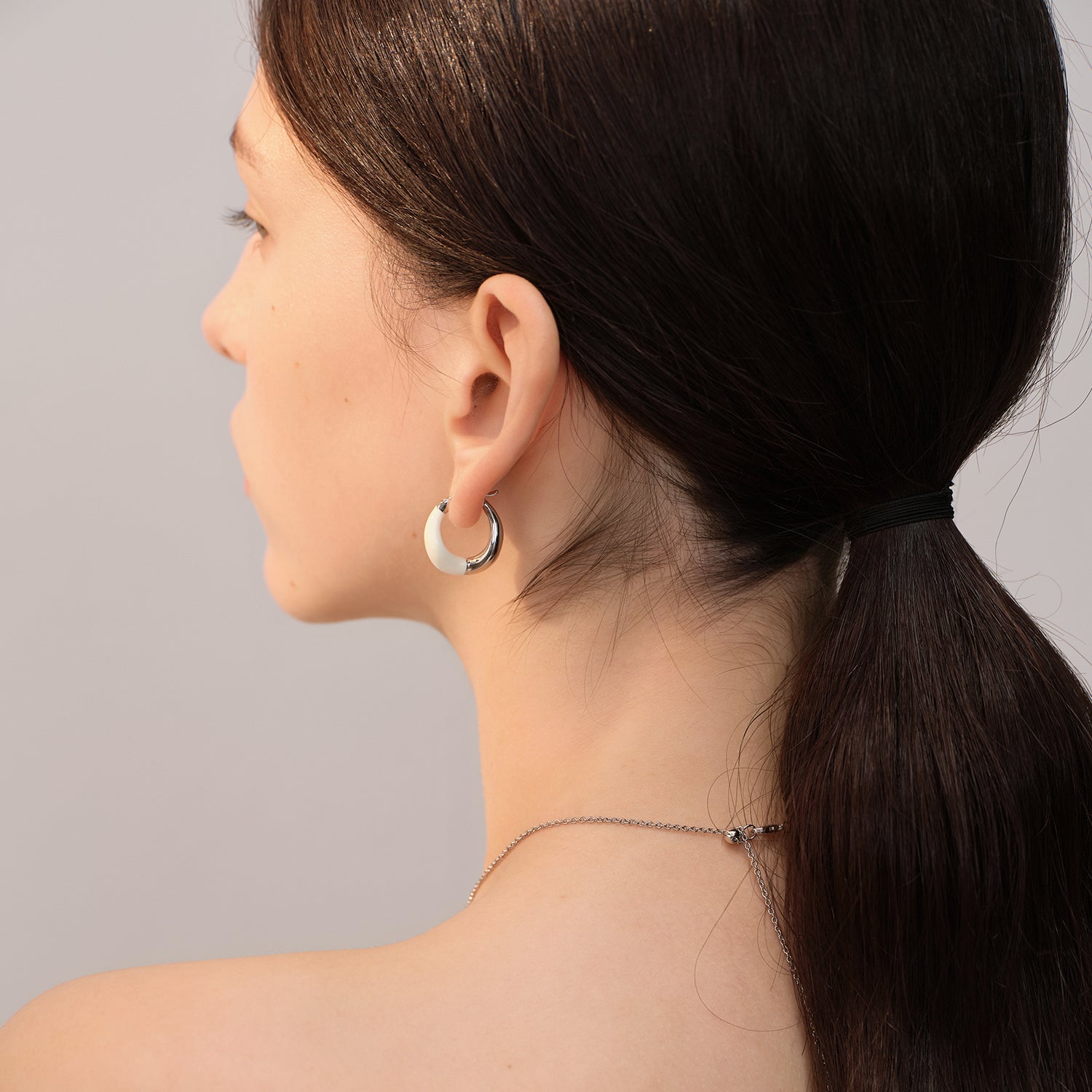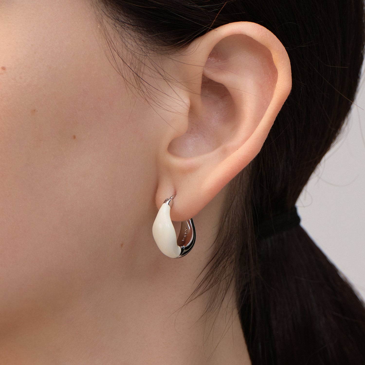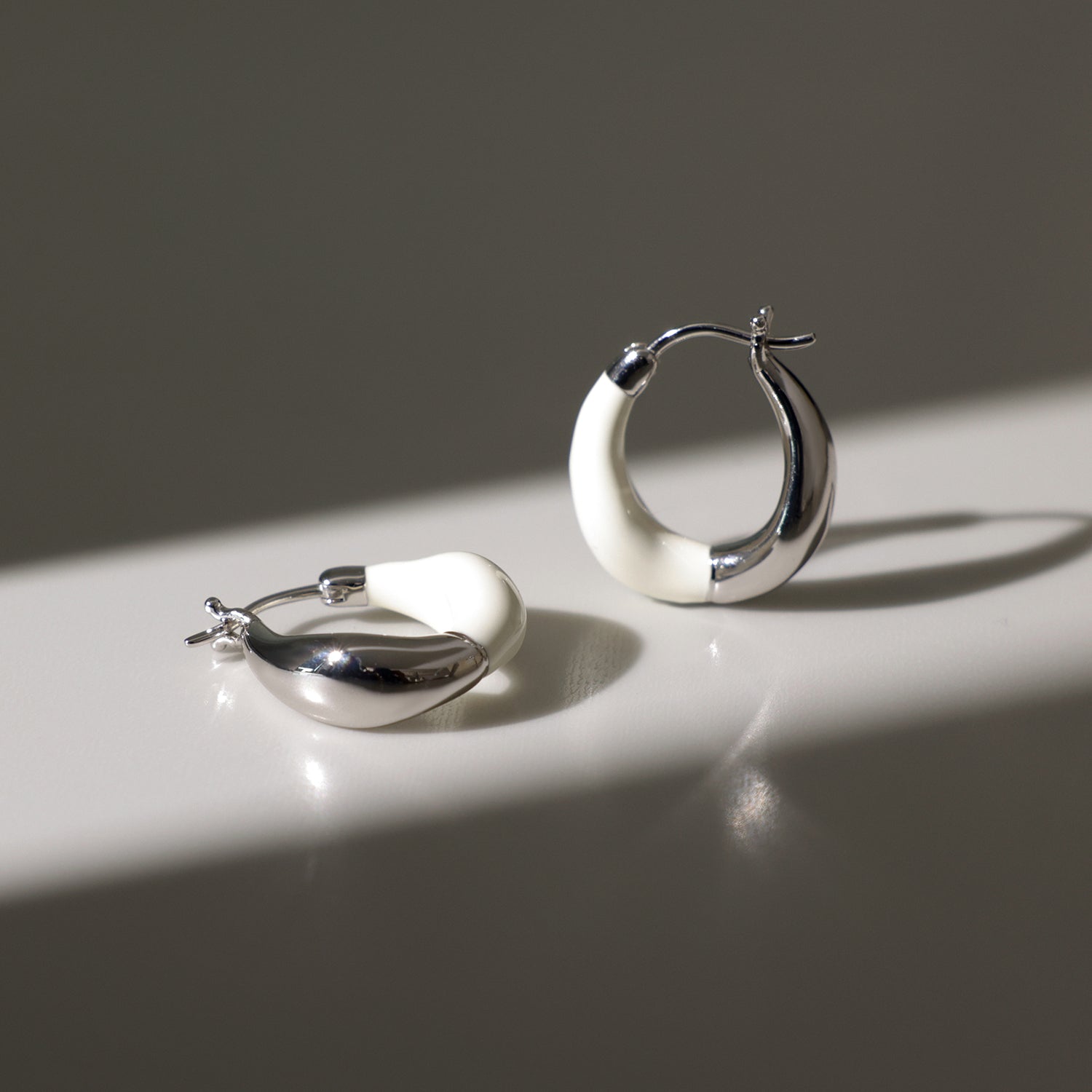 Tan versátiles, estos aros huggie aportan un toque de estilo. Cada aro tiene un lado plateado y otro blanco para combinar con tu atuendo. Pulidos hasta un brillo radiante, estos aros se cierran con bisagras.