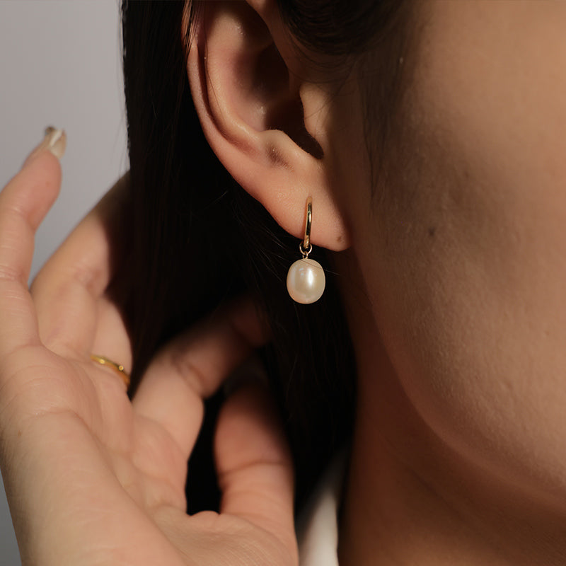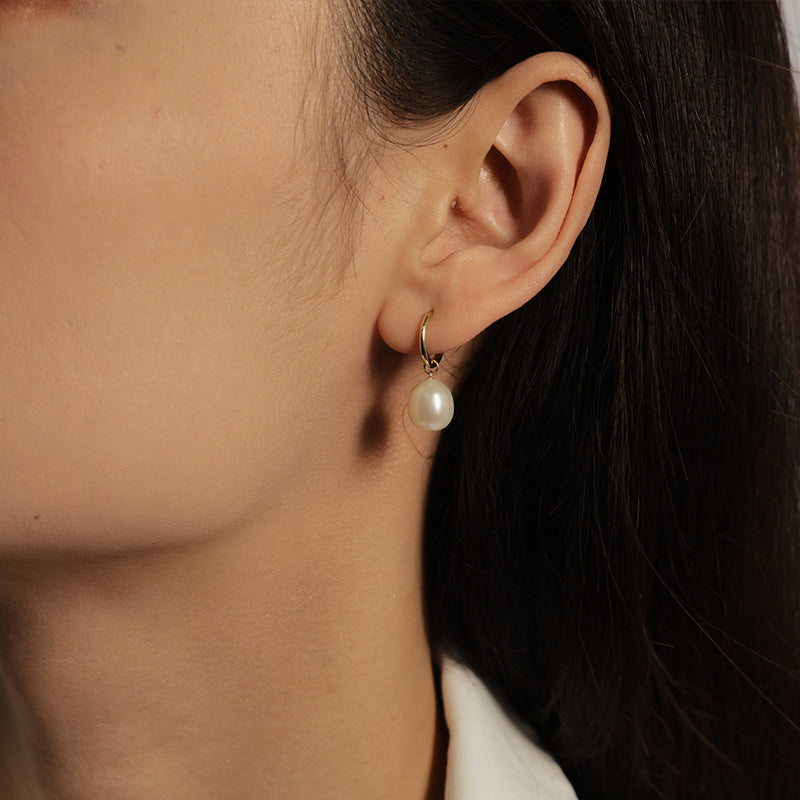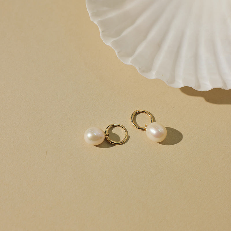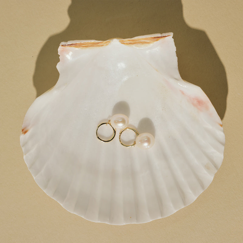 Oceana Pearl Huggie Earrings in 14K Yellow Gold