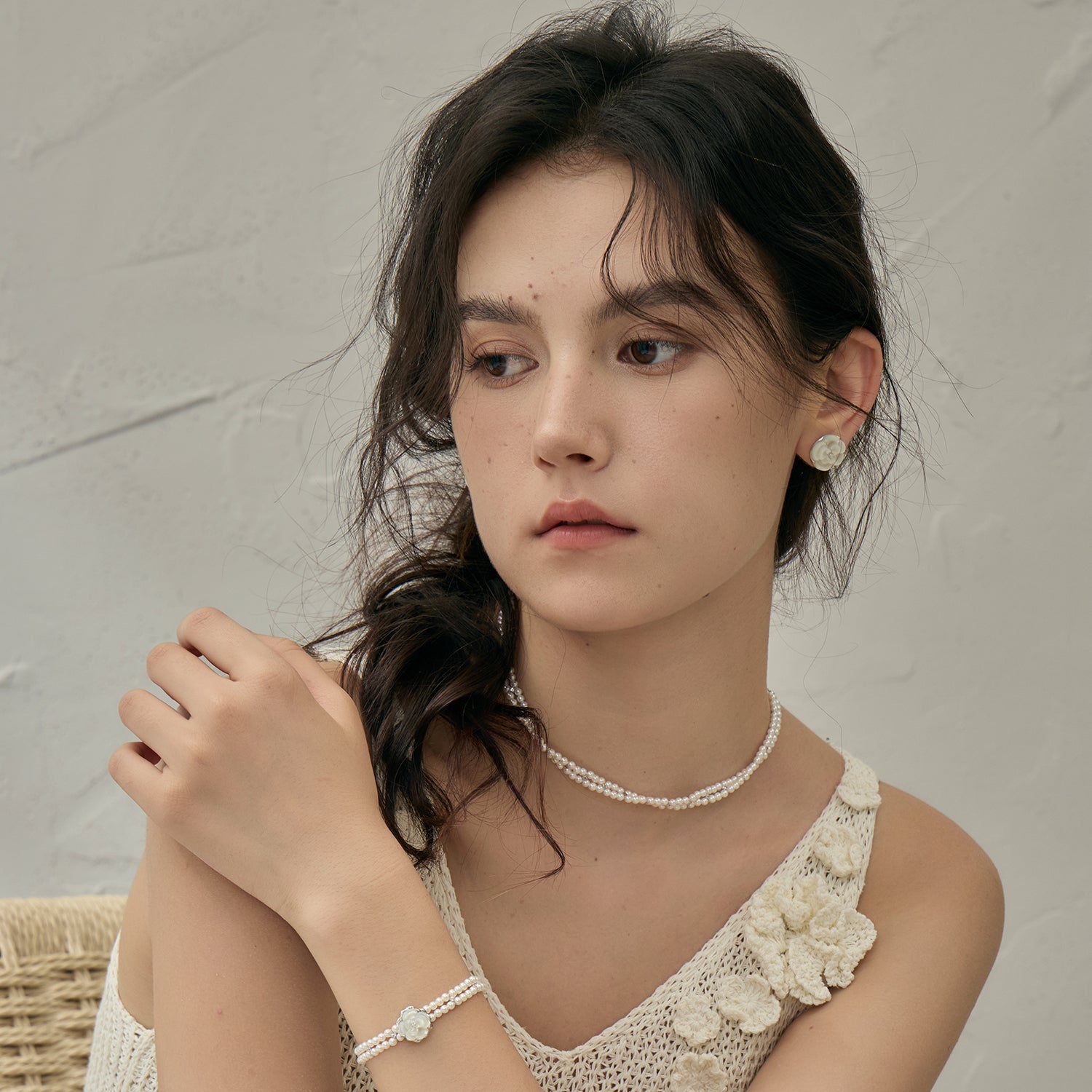 Esta exquisita gargantilla de la Colección Blossom luce una doble hilera de perlas de agua dulce, elegantemente bañadas en oro de 18 quilates sobre cobre. Esta gargantilla encapsula lujo y delicadeza. Para mayor brillo, un dije extraíble de camelia de 1,3 cm x 1,3 cm en el centro la realza. Combínala con otras piezas de la Colección Blossom, como unos pendientes de camelia a juego o una delicada pulsera, para un look coordinado y refinado.