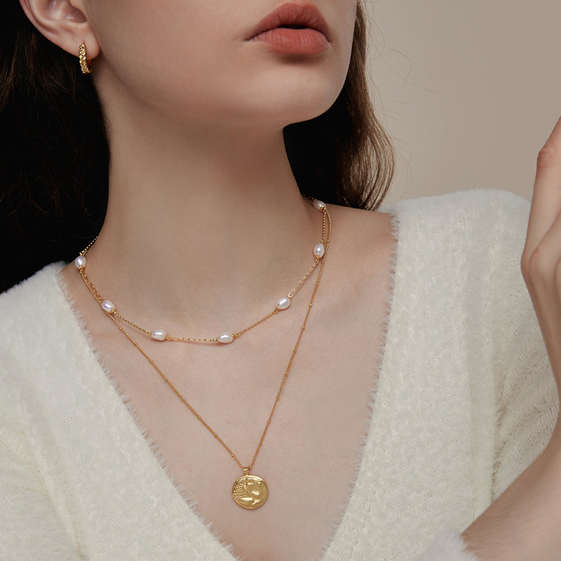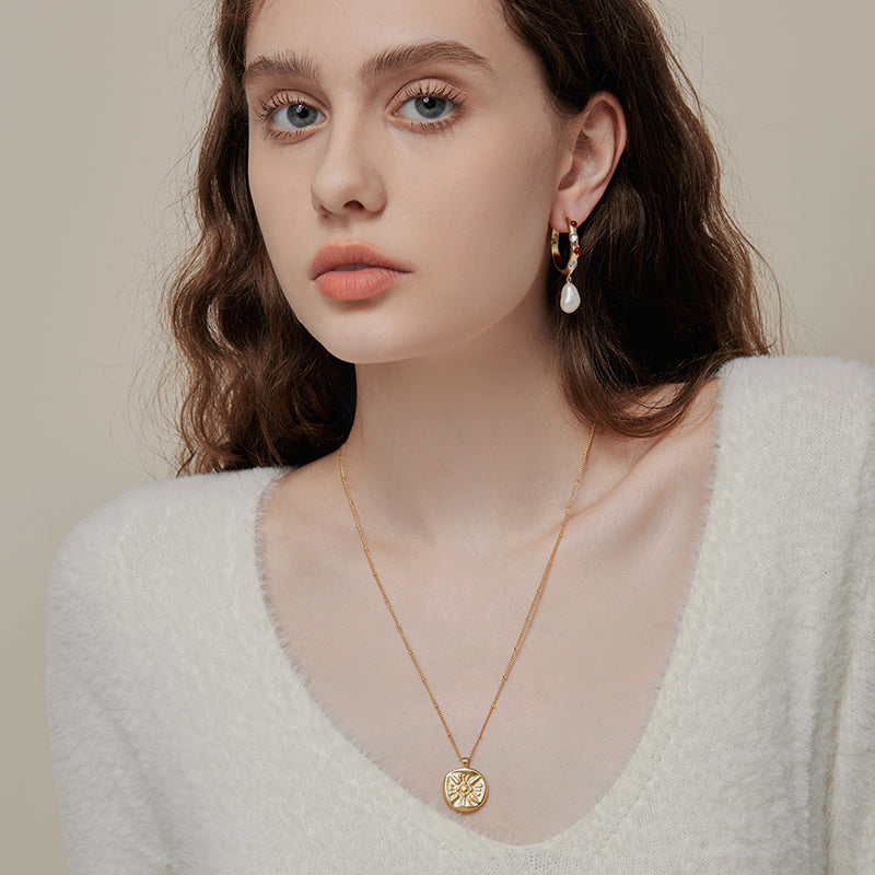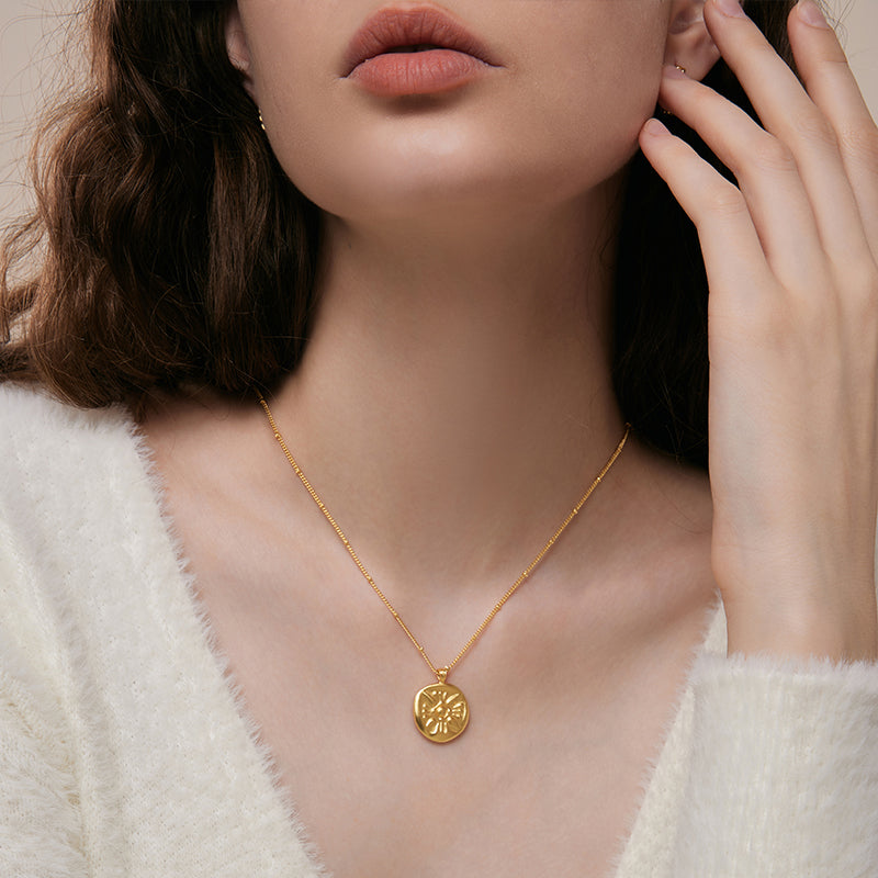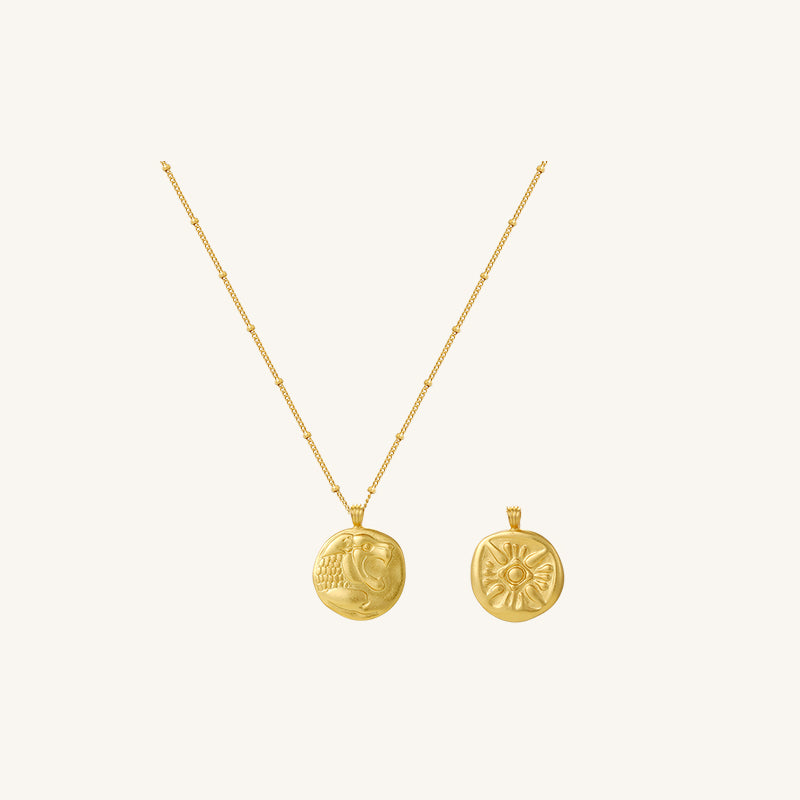 Una moneda de inspiración antigua le da a este collar de cadena el aspecto de un hallazgo vintage poco común.