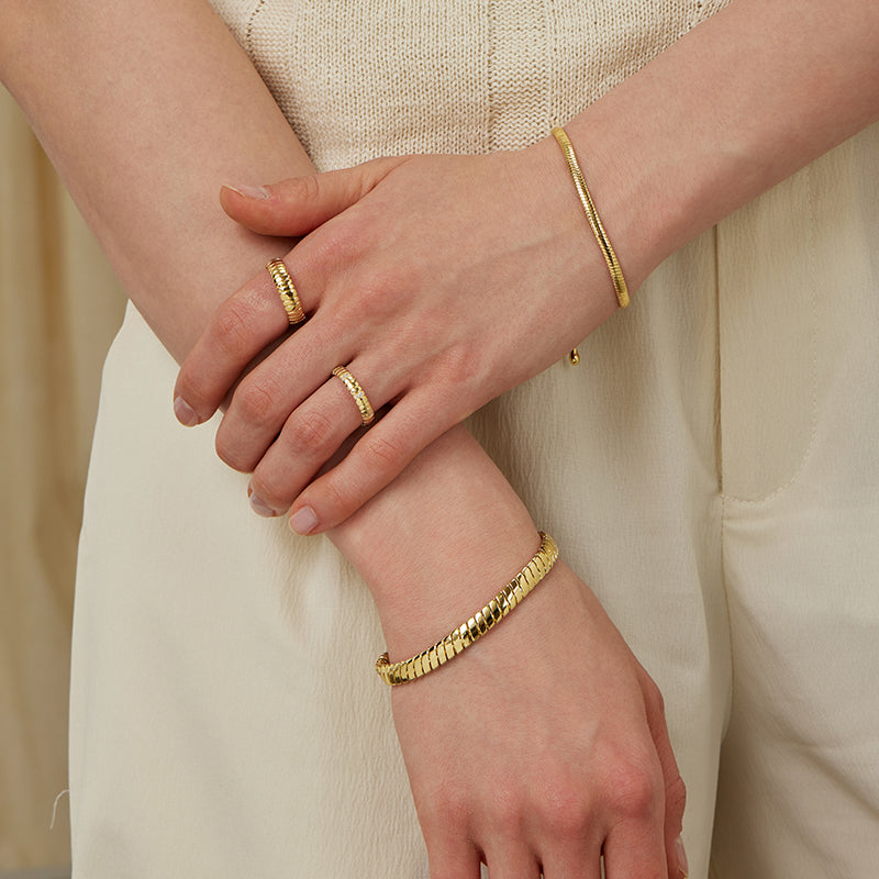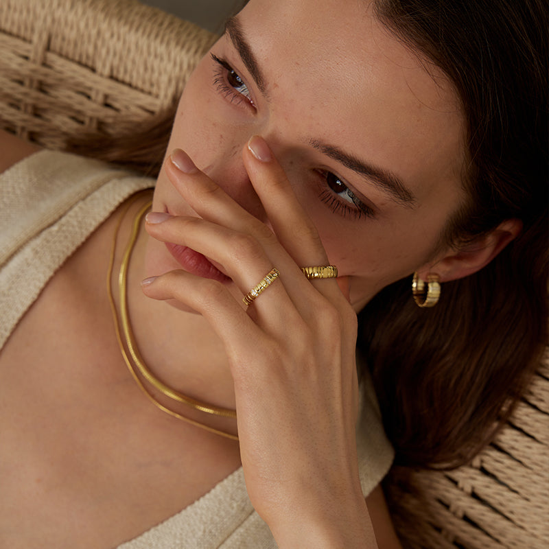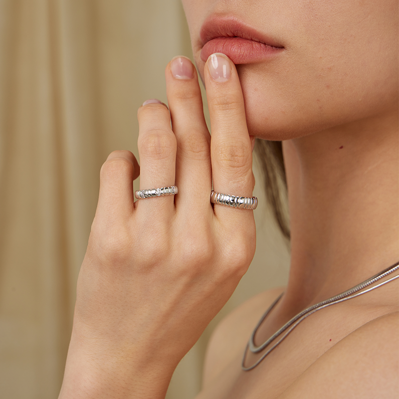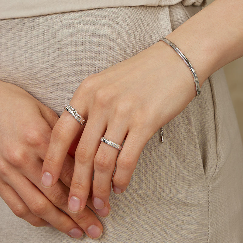 Fácil de mezclar y combinar, el anillo ofrece infinitas opciones de estilo y encarna el espíritu versátil de la colección.