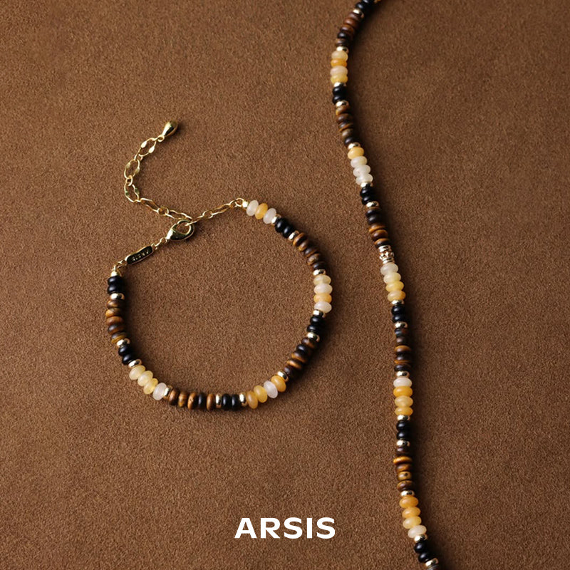このブレスレットは美しいアクセサリーであるだけでなく、インスピレーションとモチベーションの源でもあります。タイガーアイは集中力、明晰さ、そして決断力を高めると信じられており、仕事やプライベートで成功を目指す人にとって理想的な石です。このブレスレットを身に着けることで、地に足をつけ、目標に集中し続けることができ、望む富と豊かさを引き寄せることができます。タイガーアイのビーズブレスレットは、常に前向きで、努力を重ね、宇宙があなたにふさわしい祝福をもたらしてくれることを信じることを思い出させてくれます。