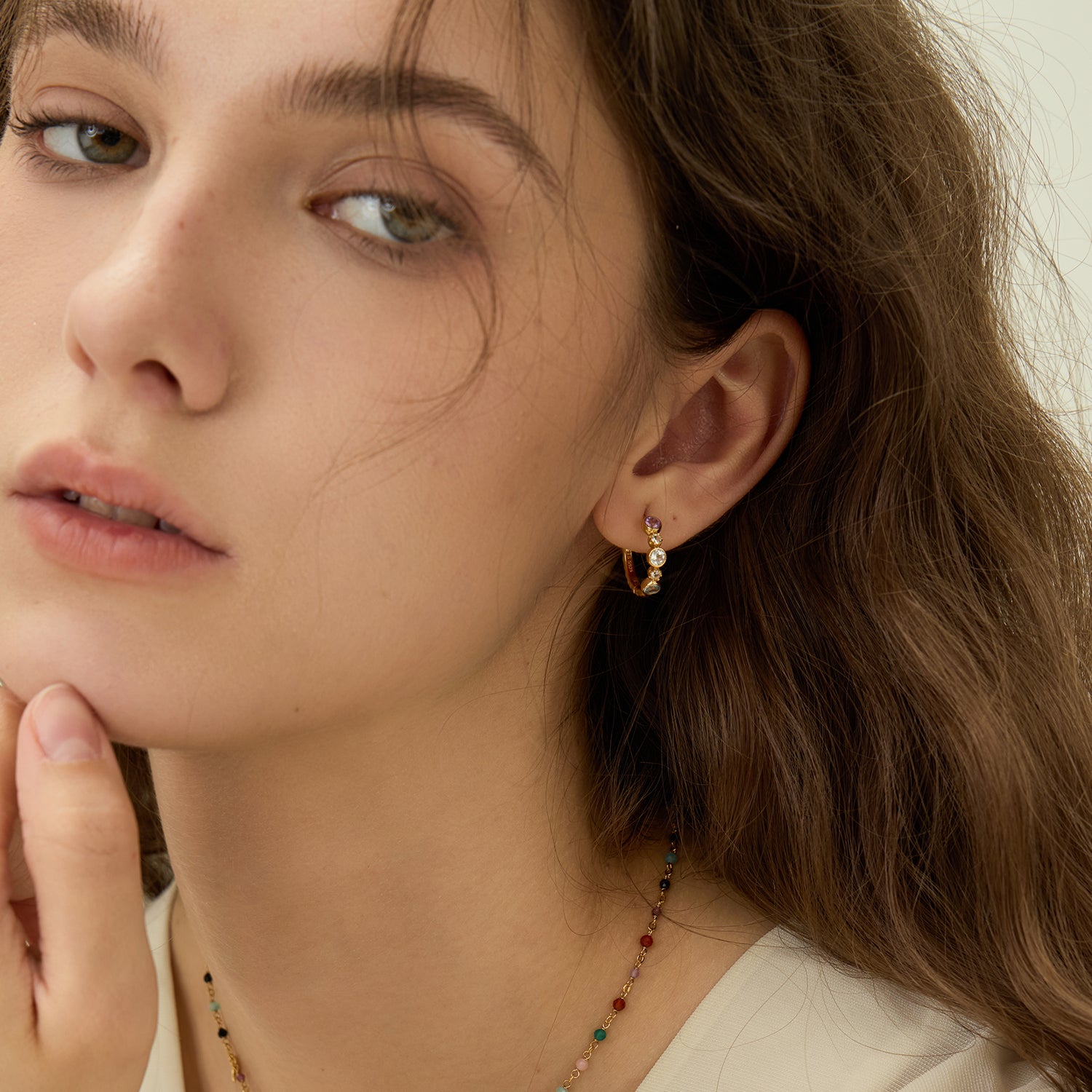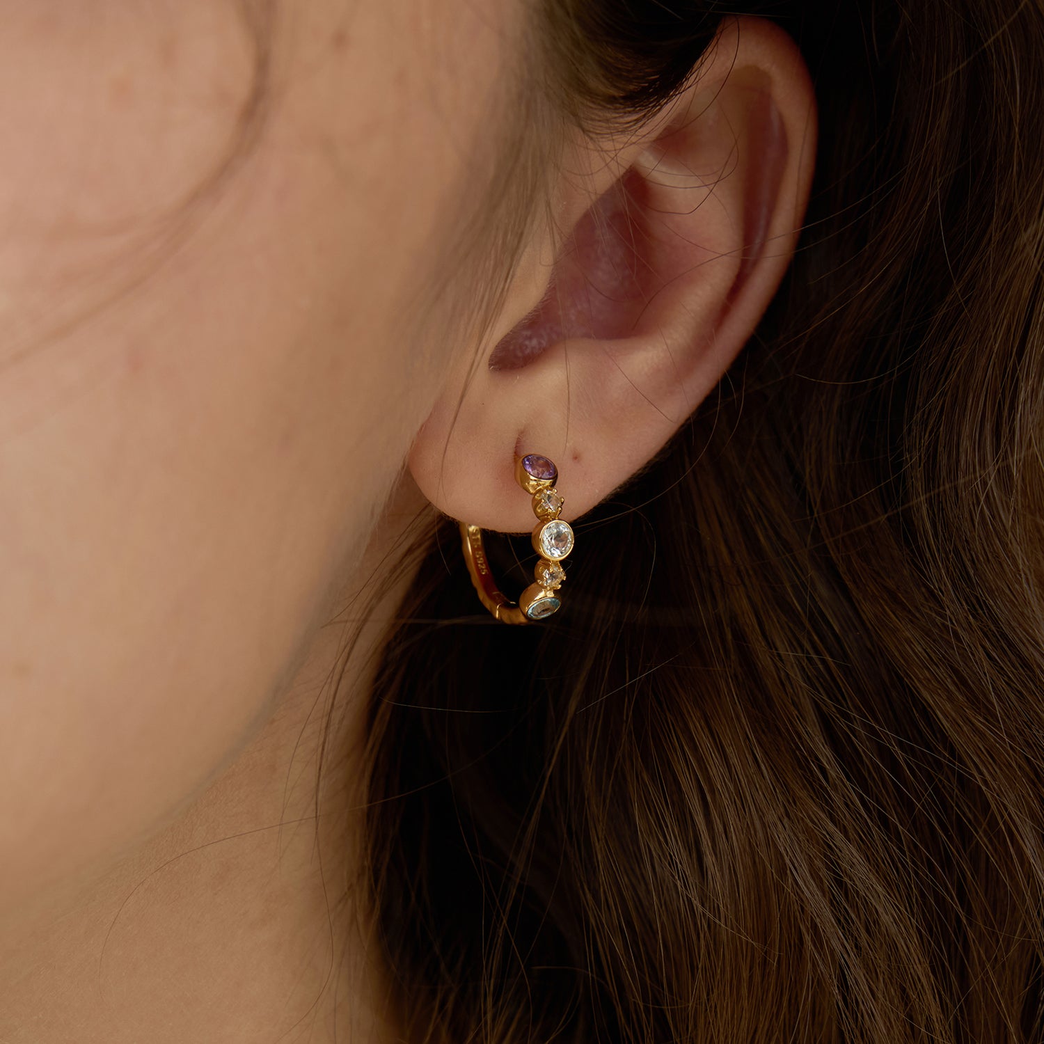 シークレットガーデン マルチジェムストーン パーティー フープピアス