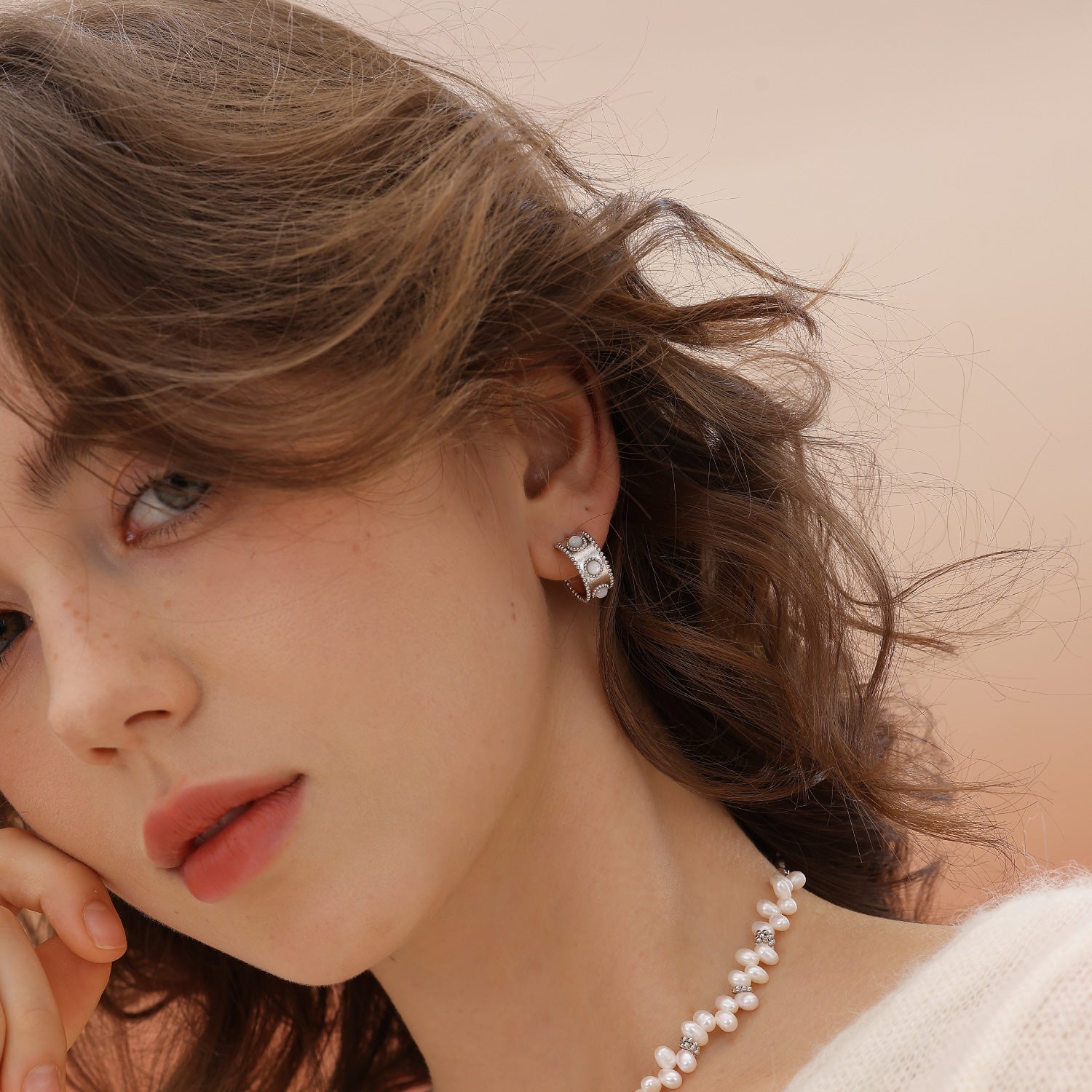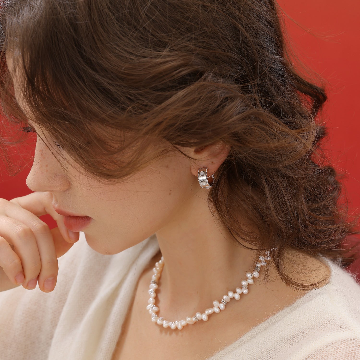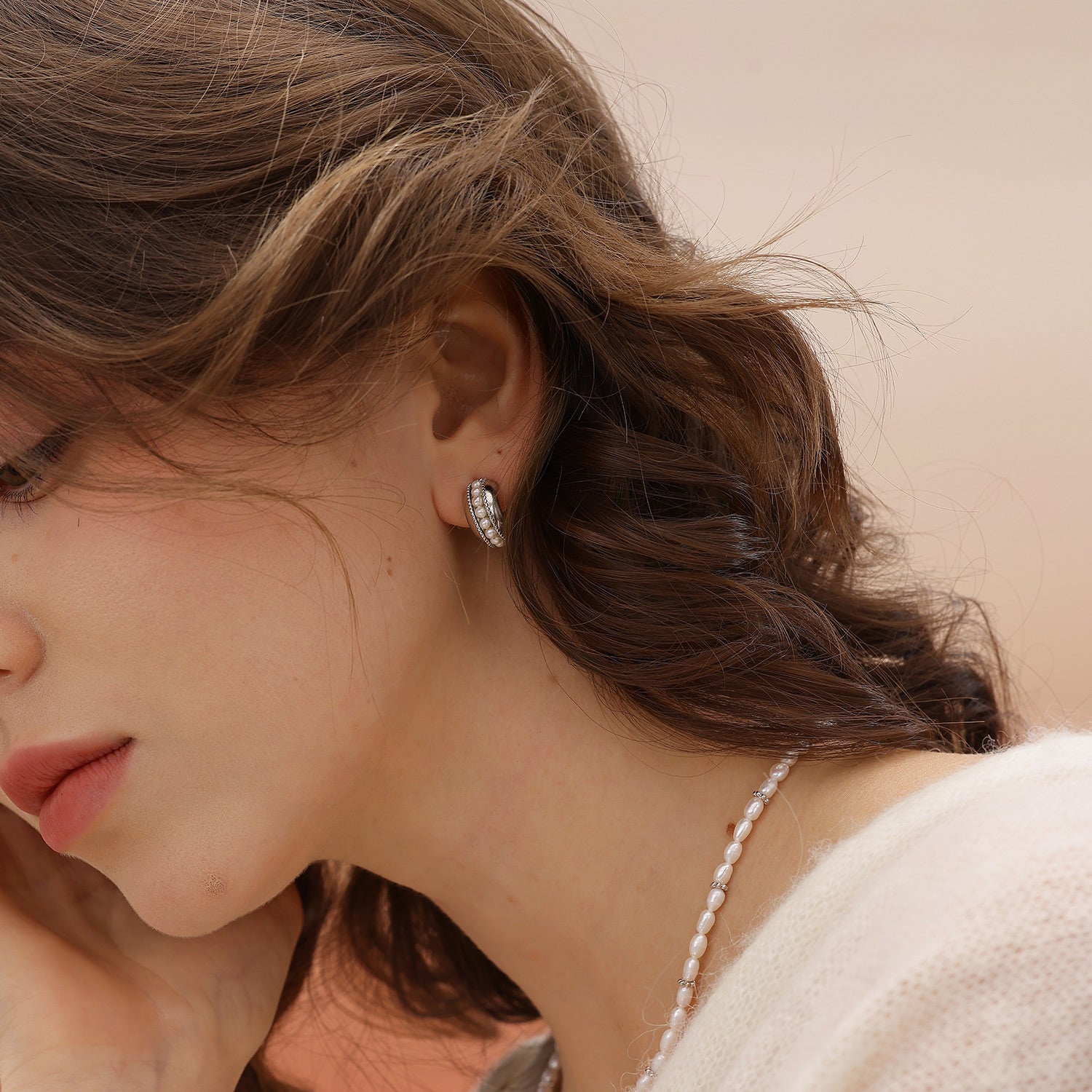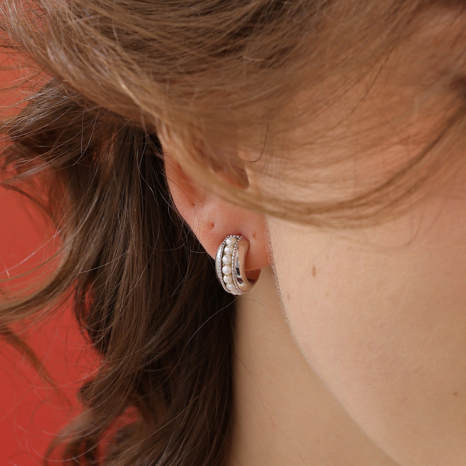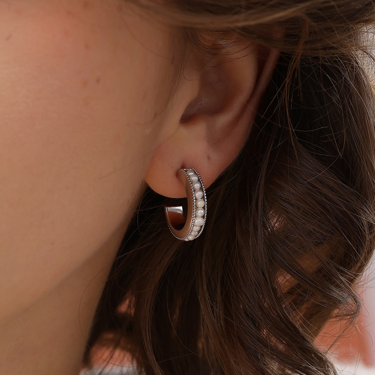 Nina Pearl Hoop Earrings (Wide)