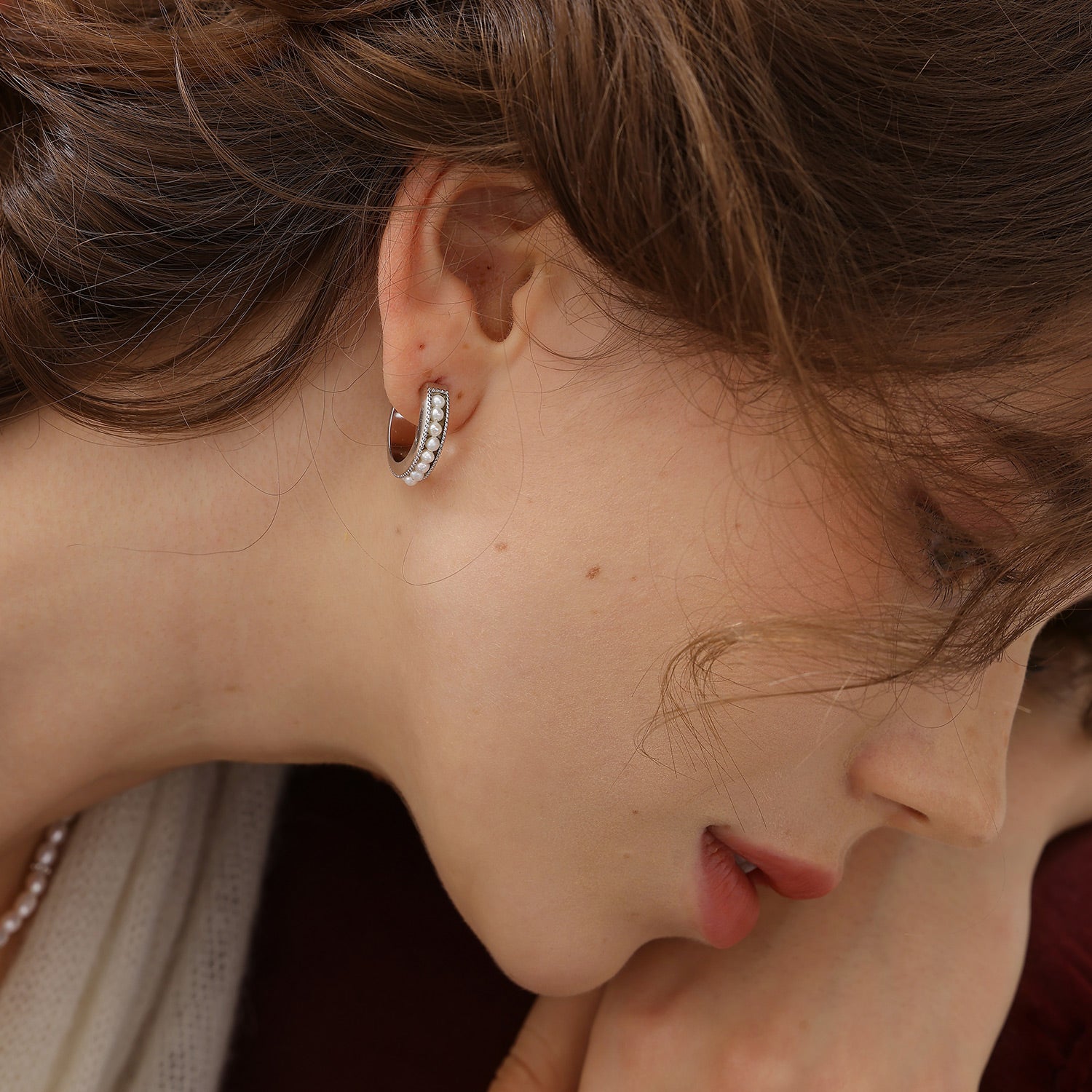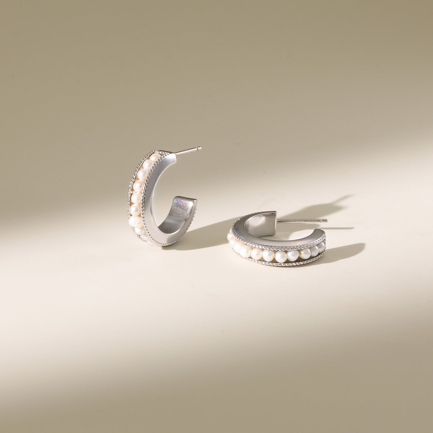 Nina Pearl Hoop Earrings (Thin)
