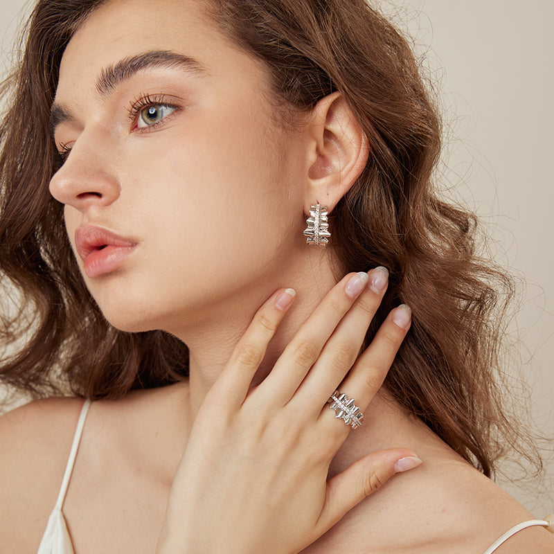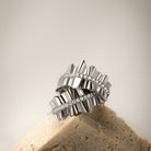 クラフテッドプリーツオープンリングは、大胆なワックスの手彫りによるひだ飾りが特徴で、あらゆるシーンにダイナミックなエレガンスを添えます。特別なイベントにも普段使いにも最適な、個性的なリングは、あなたのジュエリーコレクションにきっと大切な一品となるでしょう。