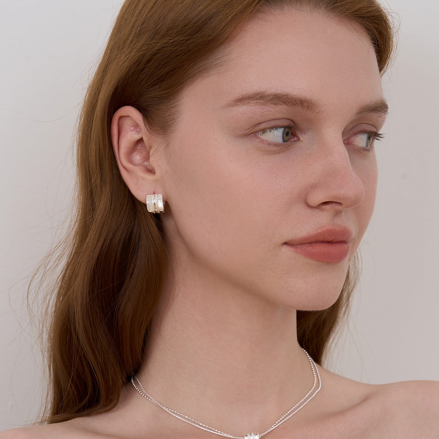 The Reese Pavé Huggie Earrings, crafted with thick silver plating over copper, bring refined sparkle to your everyday style. Accented with luminous mother-of-pearl, these petite earrings offer a minimalist yet eye-catching statement that’s ideal for any occasion. For a standout look, pair them with matching accessories.